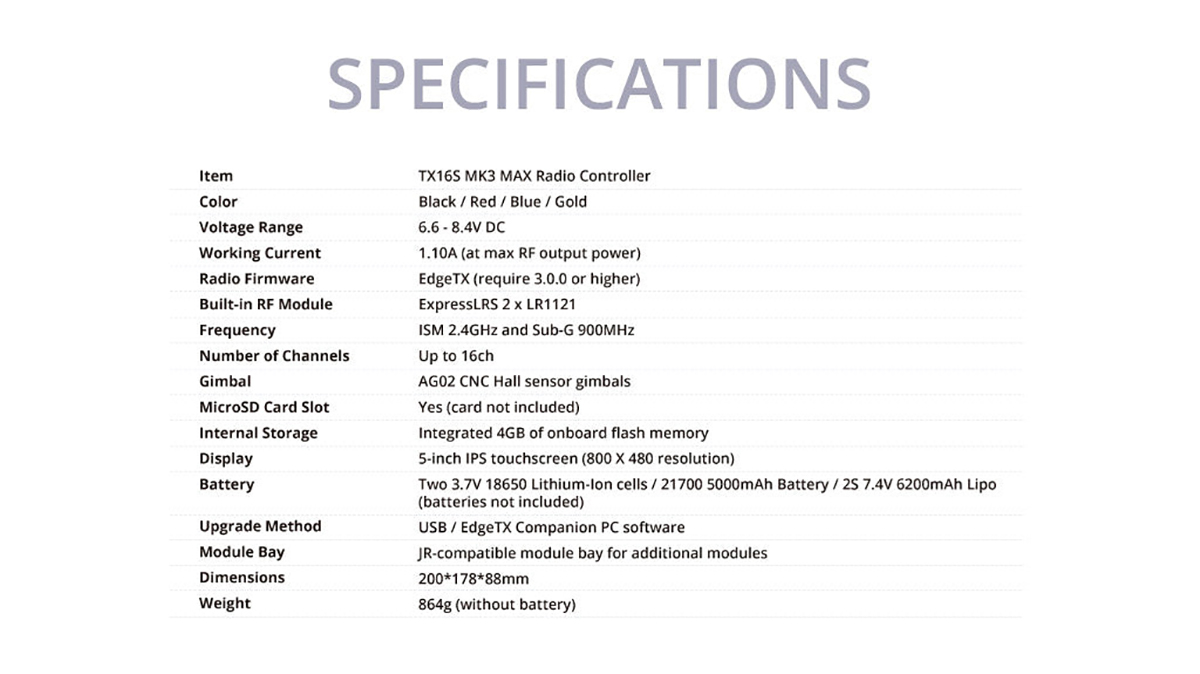 Model: TX16S MK3 MAX Radio Controller