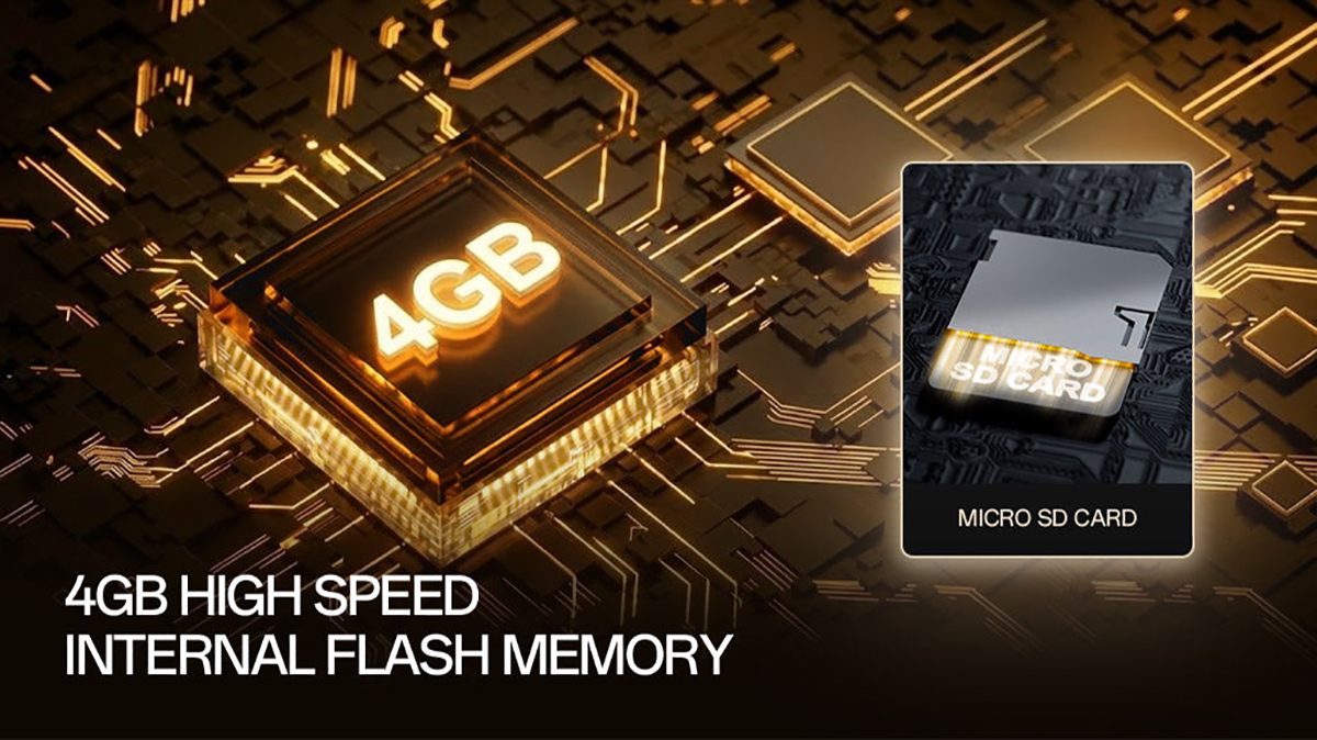 Memory: Integrated 4GB of onboard flash memory and external MicroSD card support.