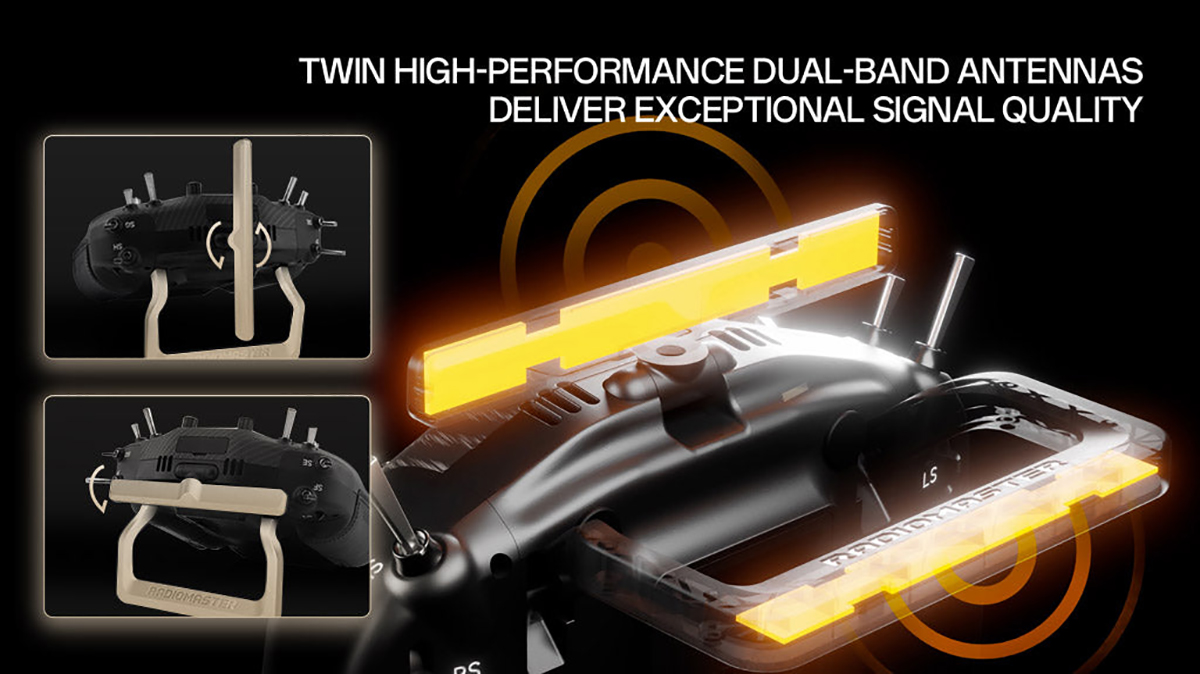 Built-in Motion Sensor: Trigger switches, pan/tilt cameras, or telemetry callouts simply by tilting your radio.