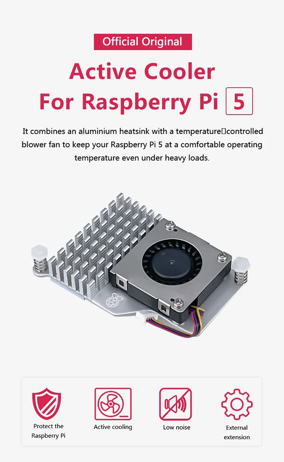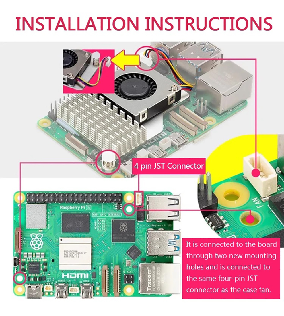 Raspberry Pi Active Cooler Adjustable Speed Cooling Fan Aluminum Heatsnk for Raspberry Pi 5