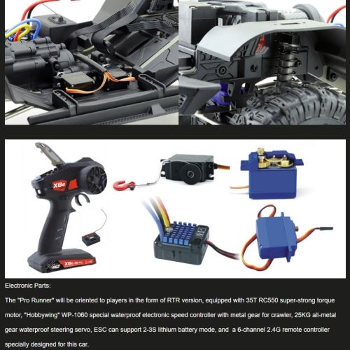 In October, 2023, RGT will launch a new 1/10RTR crawler to market, named”Pro Runner”, item number: EX86130. This is a high-performance simulation crawler newly developed by RGT, especially its excellent mechanical properties and perfect appearance. Pro Runner is equipped with following designs: front Structure:and rear straight axles, two-speed gearbox and DIG system, rear axle lock function, freely switch from the front drive mode to four-wheel drive mode, 6% front-rear speed ratio, CNC steel spiral main gear, and reverse transmission system. It also has low axial effect, excellent crossing performance and high durability. “Pro Runner” to the exterior design and interior decoration of Ford Raptor Edition. The other highlights assembled in factory are winch hook function, multi-mode interconnect LED light control, 6-channel 2.4G remote control and “Hobbywing” 60A special electronic speed controller for crawler.