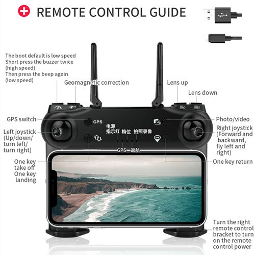Function:4K HD ESC camera, GPS positioning, real-time image transmission, smart follow, custom route, gesture photo / video,one-key takeoff, one-key landing, one-key return, low-powerreturn, headless mode, speed adjustment, LED night Navigationlights, mobile phone control, MV production