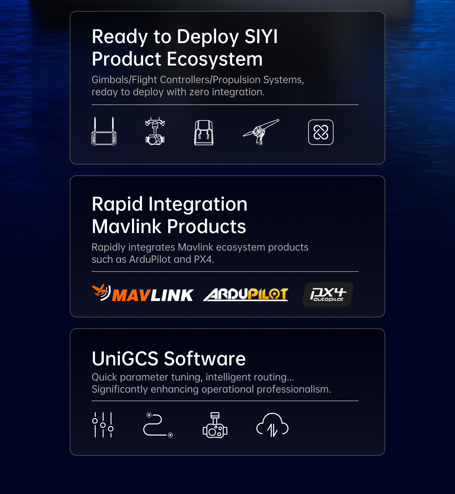 Open Ecosystem, Easy Integration:Compatible with SIYI’s full product line and Mavlink-protocol devices, reducing integration costs for equipment manufacturers