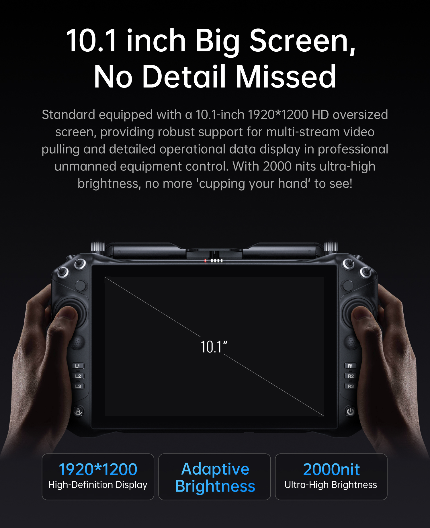 Ultra-Bright Large Screen for Outdoor Visibility:10.1-inch 1920*1200 HD screen with 2000nit brightness, clear details without shading in strong light