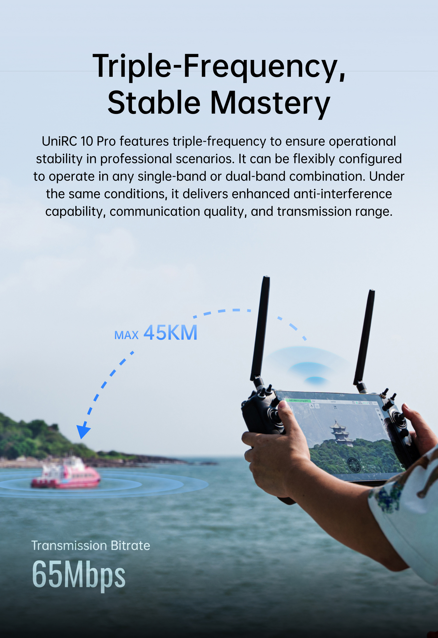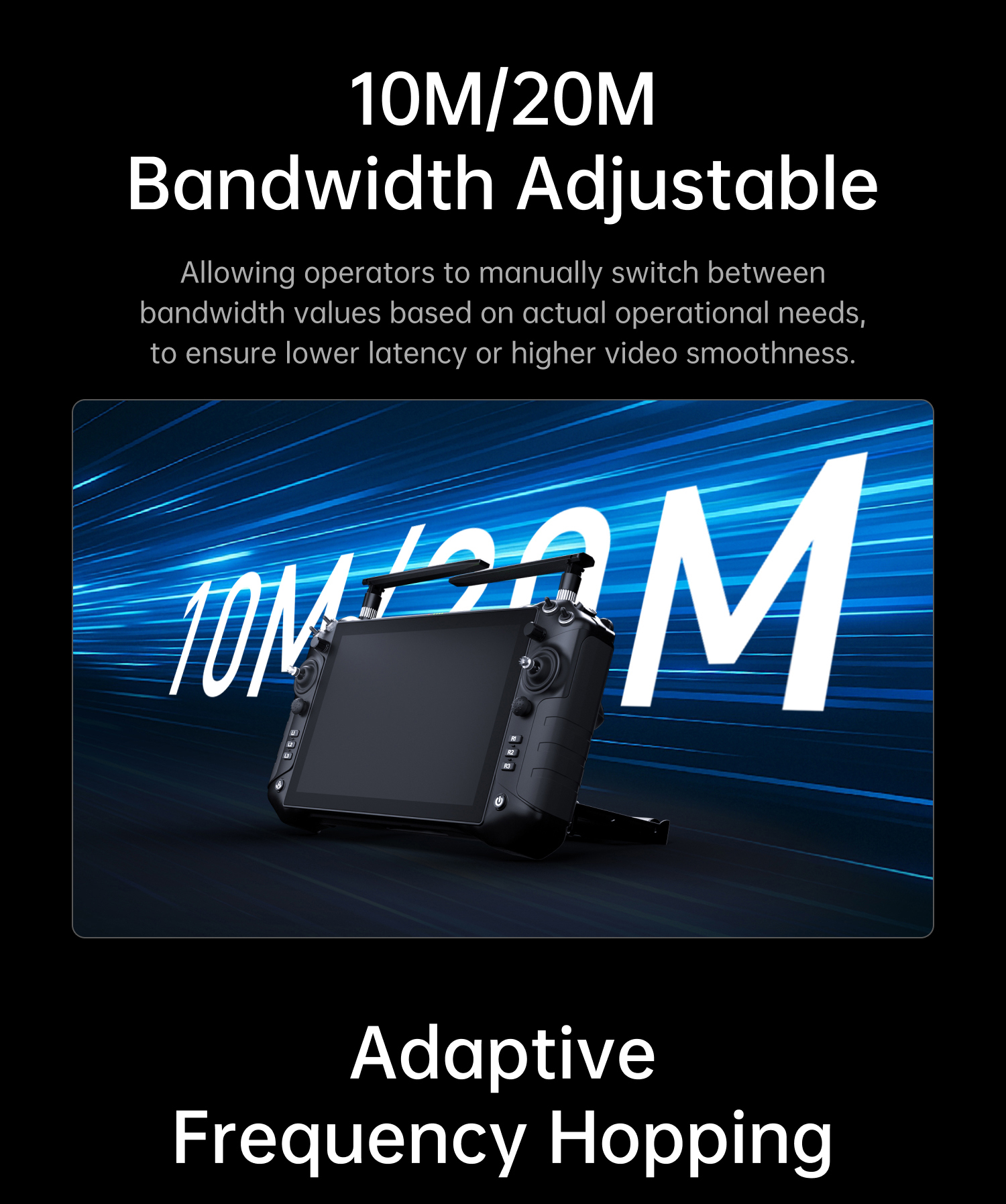 Triple-Frequency Redundancy, Anti-Interference & Stable:Supports flexible triple-band switching + adaptive frequency hopping, no video freezes or signal drops in complex electromagnetic environments