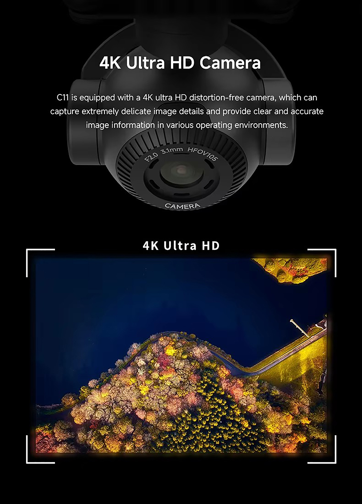 Skydroid C11 Gimbal Camera 4K 3-Axis Stabilized 30x Digital Zoom Light weight for FPV Aerial Photography Drone