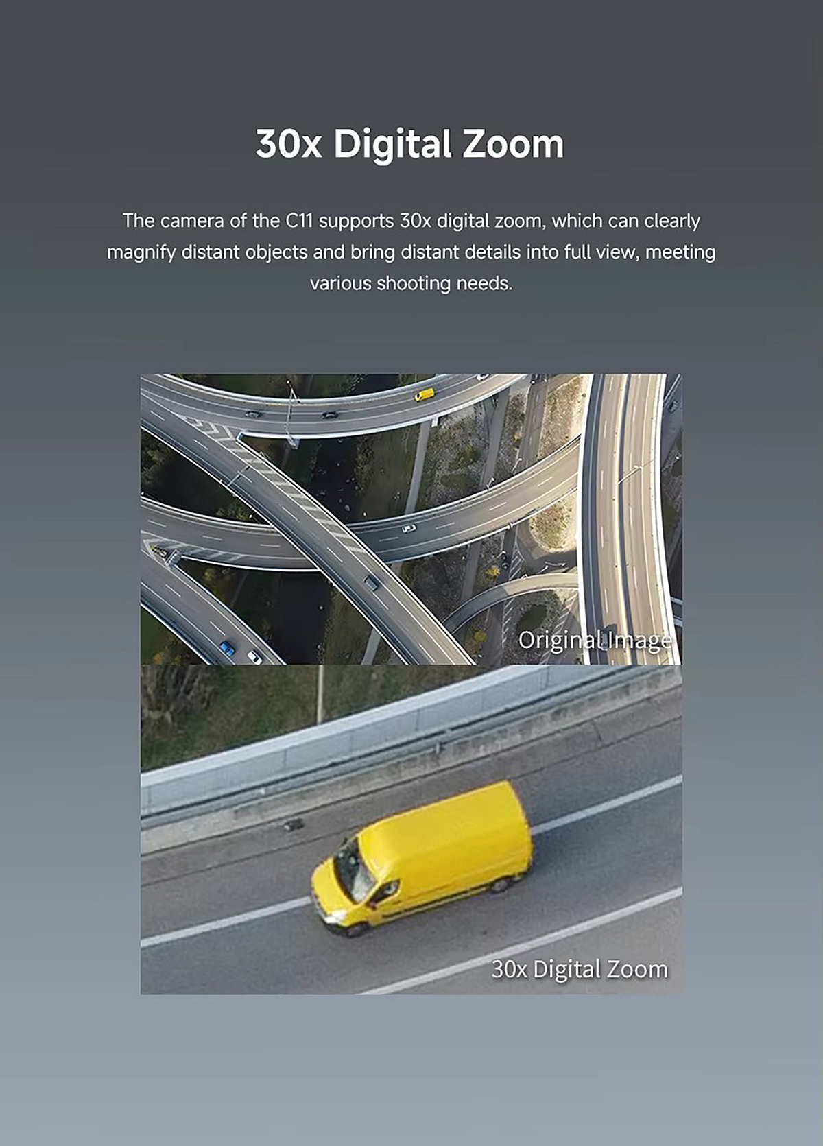30x Electronic Zoom: Allows for clear close-ups from a distance.