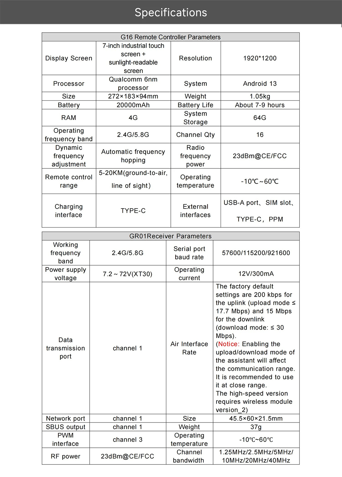 Skydroid G16 Remote Controller with GR01 Receiver HD Digital Video Transmission 2.4GHz 5.8GHz Dual Band