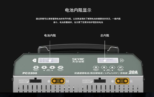 SKYRC PC2200 high-power charger, AC input, can convert AC voltage to DC voltage, suitable for 12S LiPo/LiHV battery charging, storage charge and discharge, internal resistance detection, dual-channel synchronous setting of this machine, short circuit protection, reverse connection protection And over-temperature protection function. With one-button charging operation function, etc.