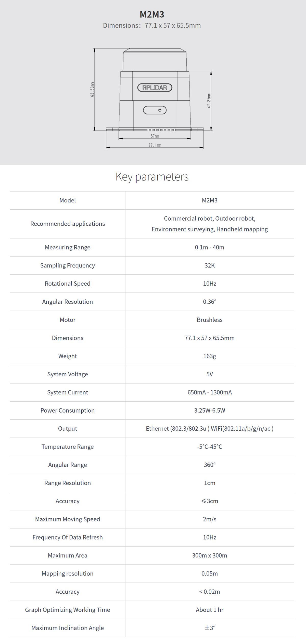 SLAMTEC Mapper M2M3 Laser Mapping Sensor 40m Range 32K High Quality for Robot Navigation Localization Mapping