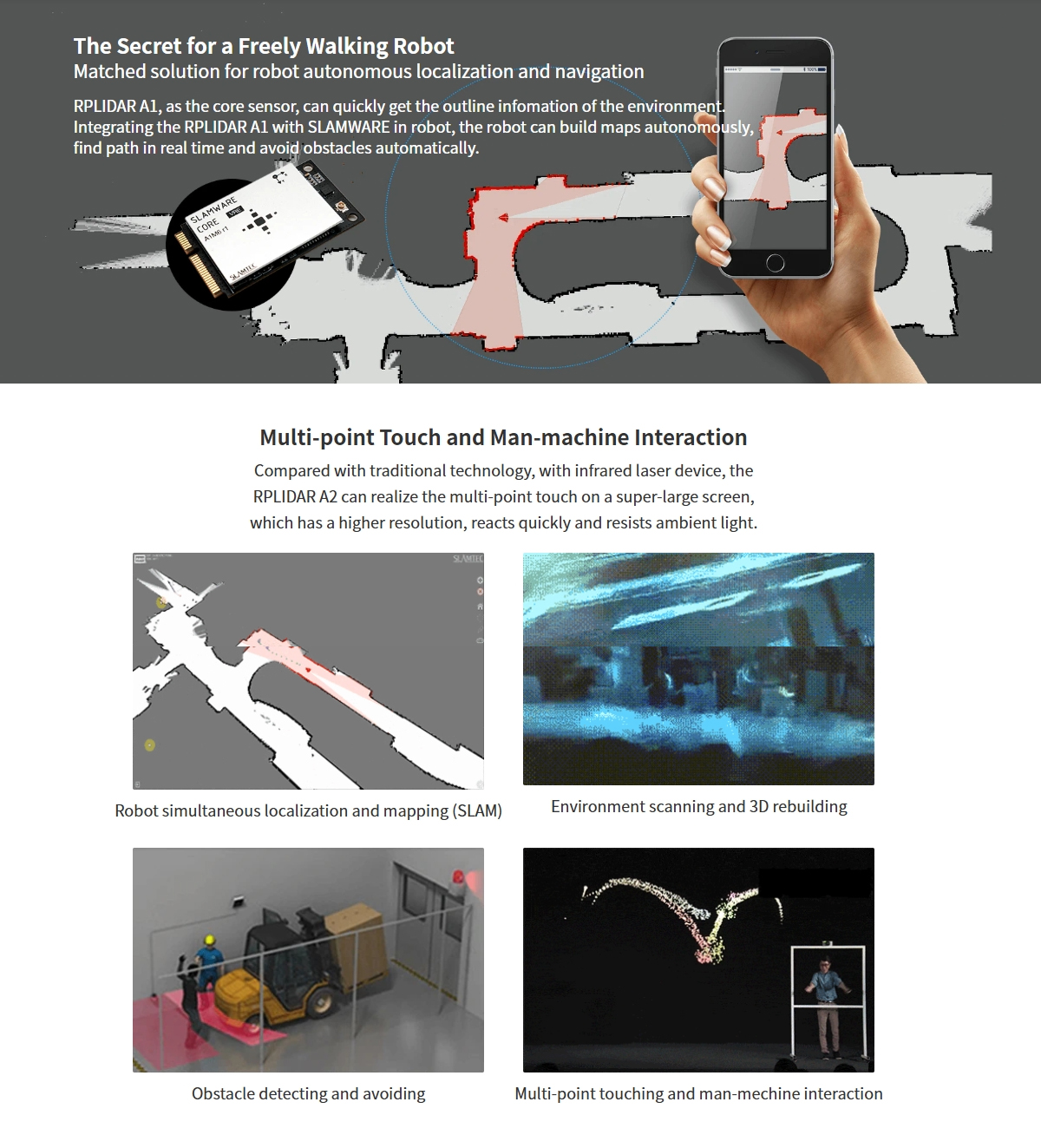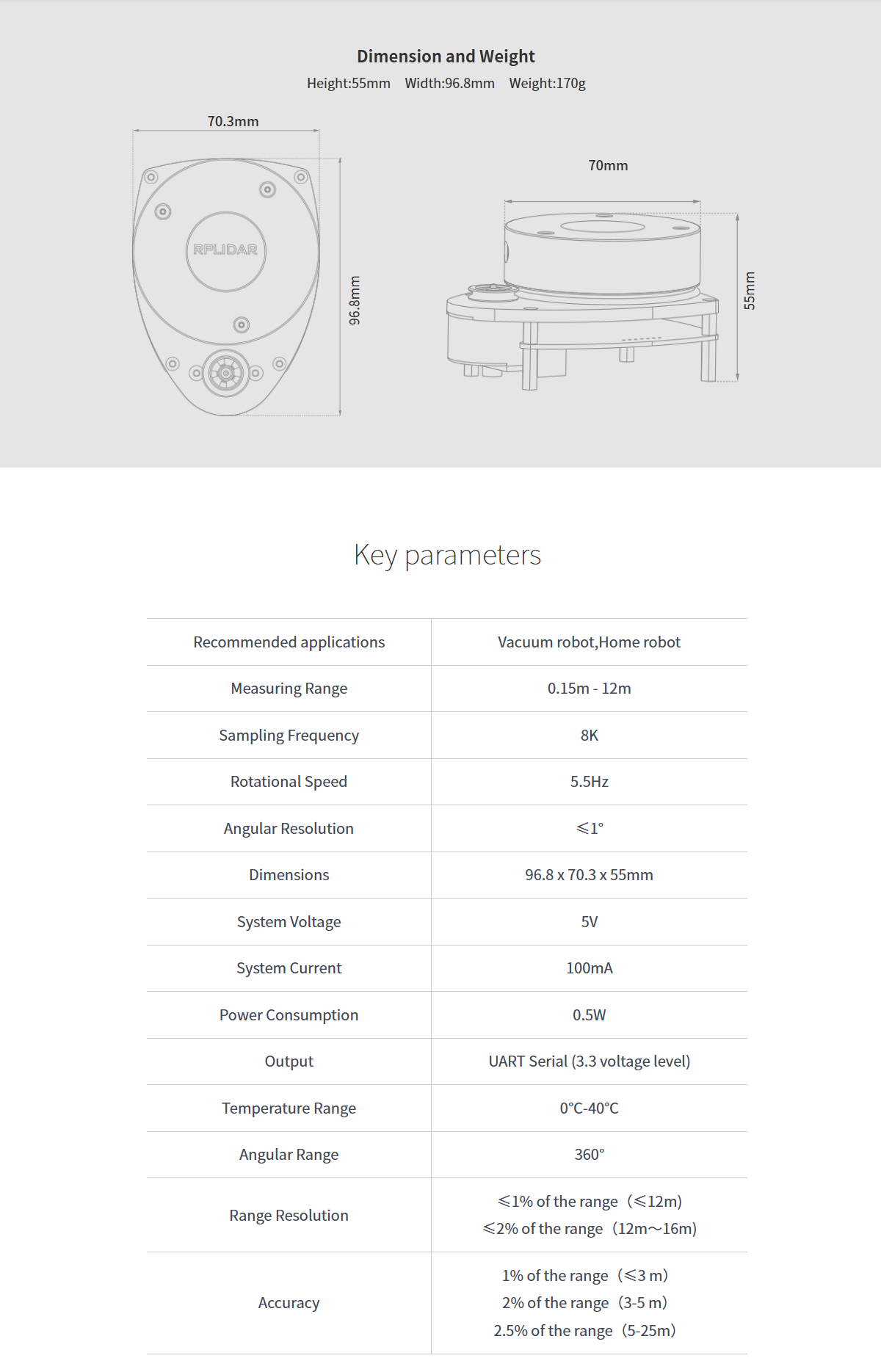 RPLIDAR A1 is basically a laser triangulation measurement system. It can work excellently in all kinds of indoor environments and outdoor environments without sunlight.
