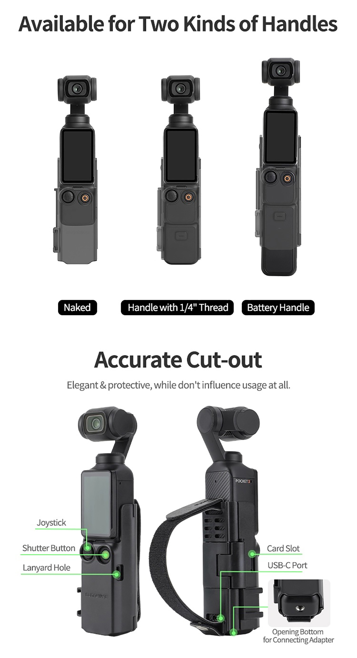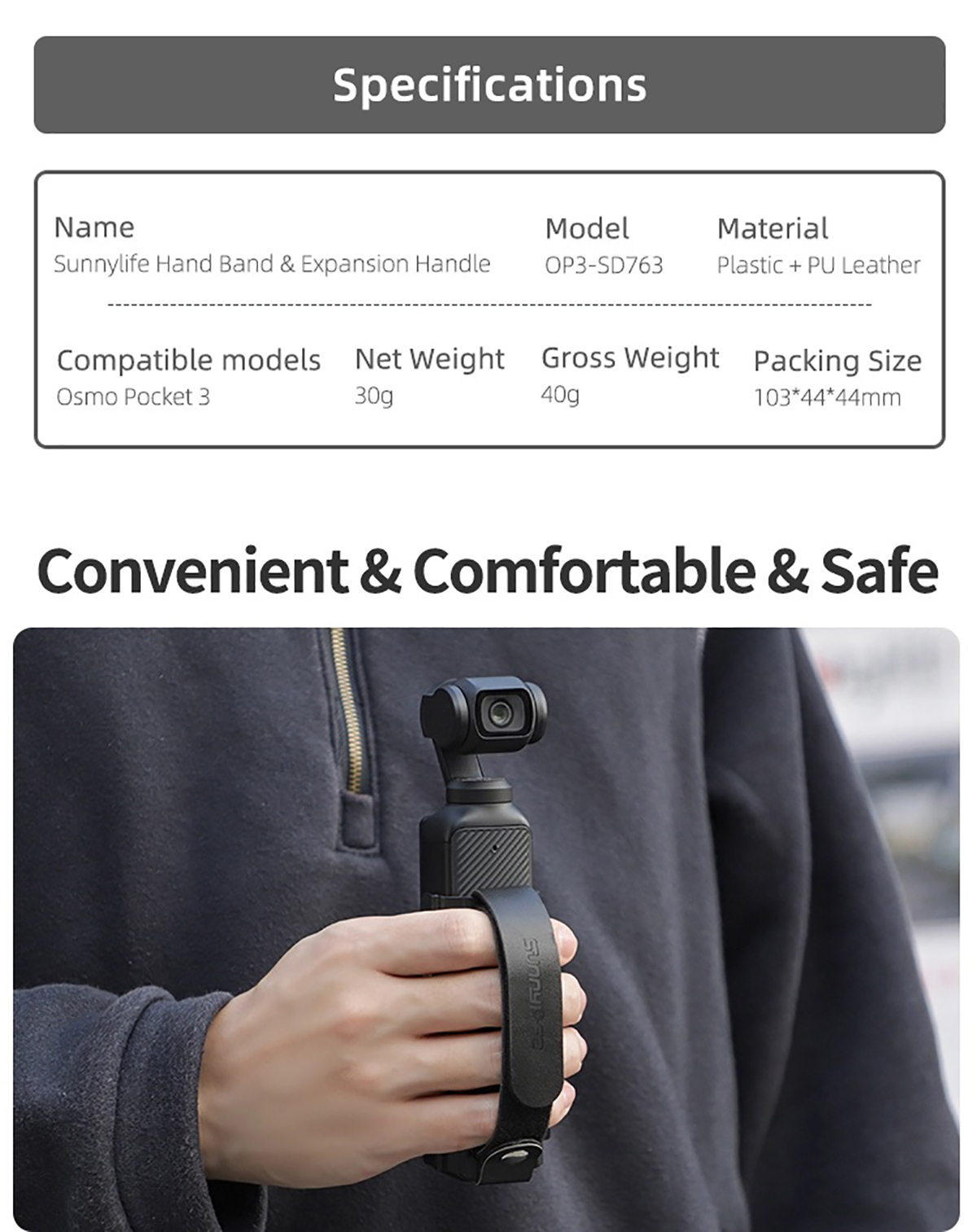 Comfortable Extension Handle. It is also an extension handle and makes POCKET 3 more comfortable to hold.