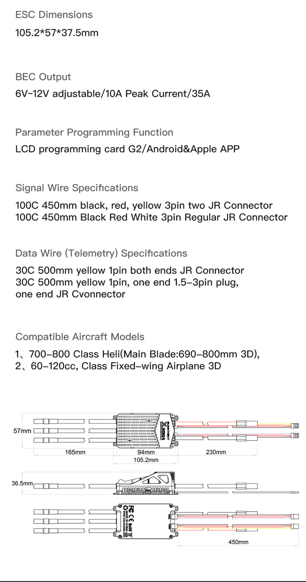 BEC Output: 6V~12V adjustable/10A Peak Current/35A