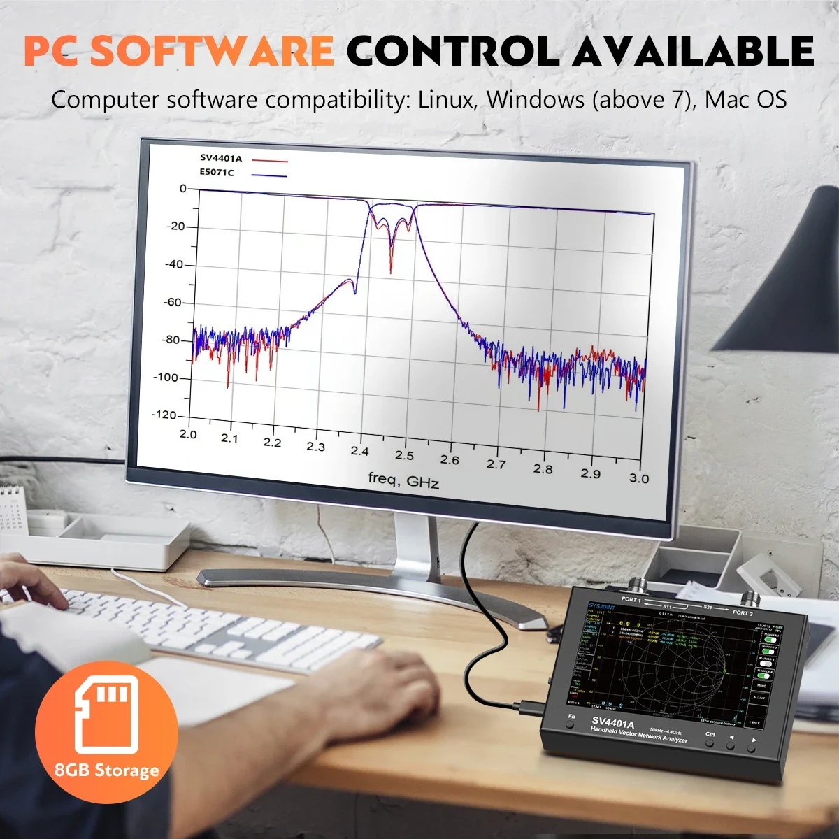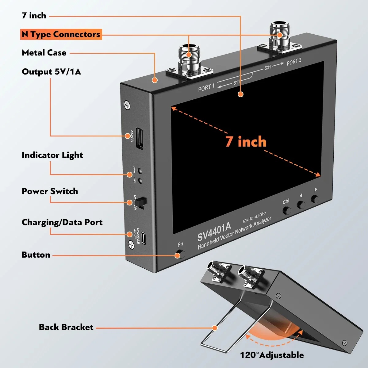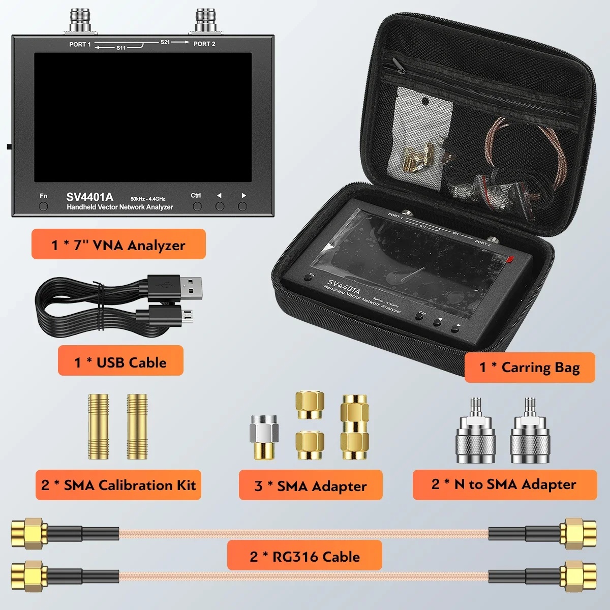 SV4401A 7 Inch Touch LCD Handheld Vector Network Analyzers 50KHz-4.4GHz 100dB Dynamic NanoVNA Tester