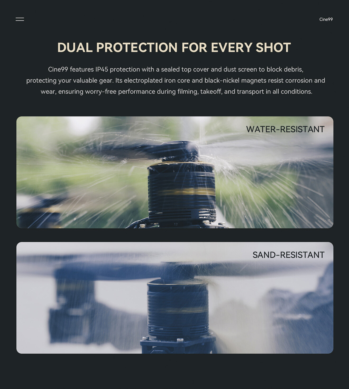 Durable & Weather-Ready: IP45-rated protection against dust and moisture for worry-free outdoor flights.