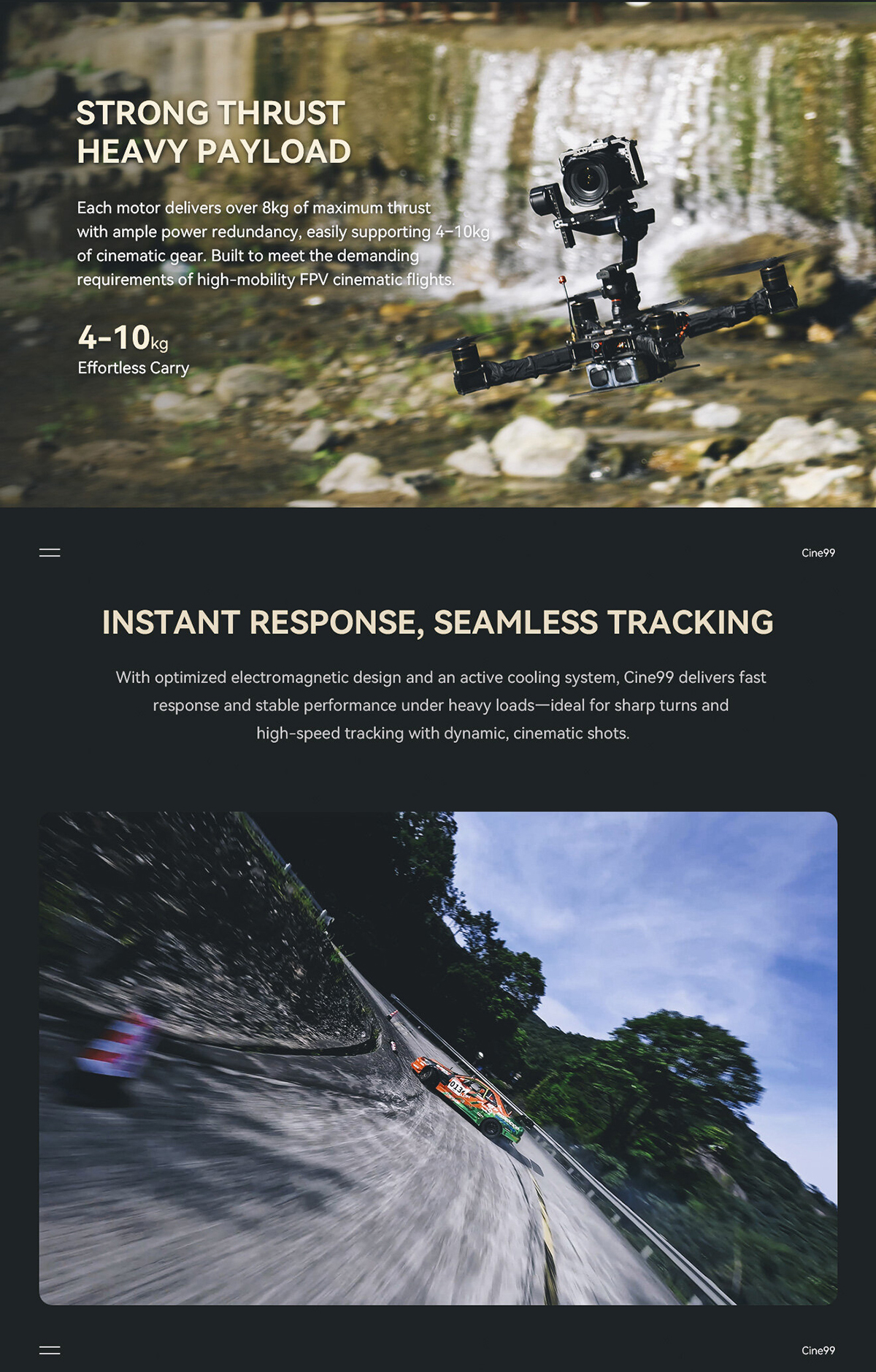 High Torque & Payload Capacity: Effortlessly lifts heavy FPV rigs, gimbals, and high-resolution cameras.