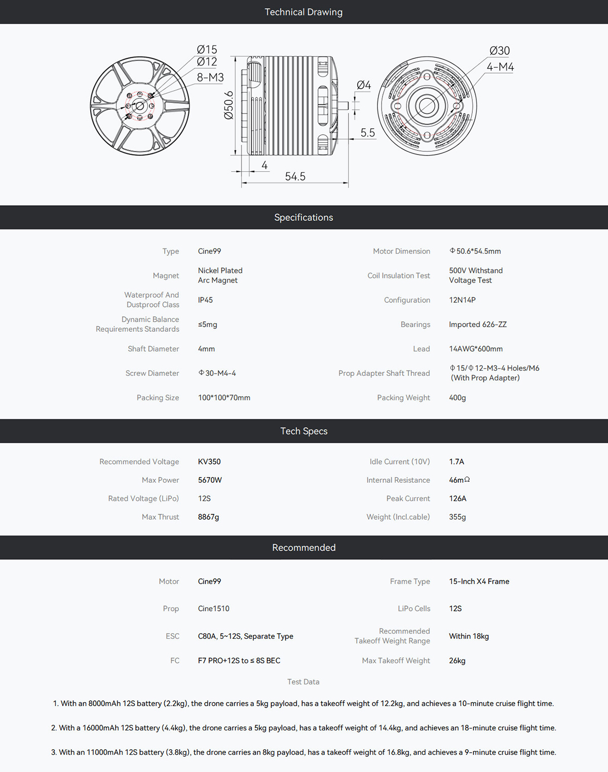 Motor Dimensions: Φ50.6 x 54.5mm