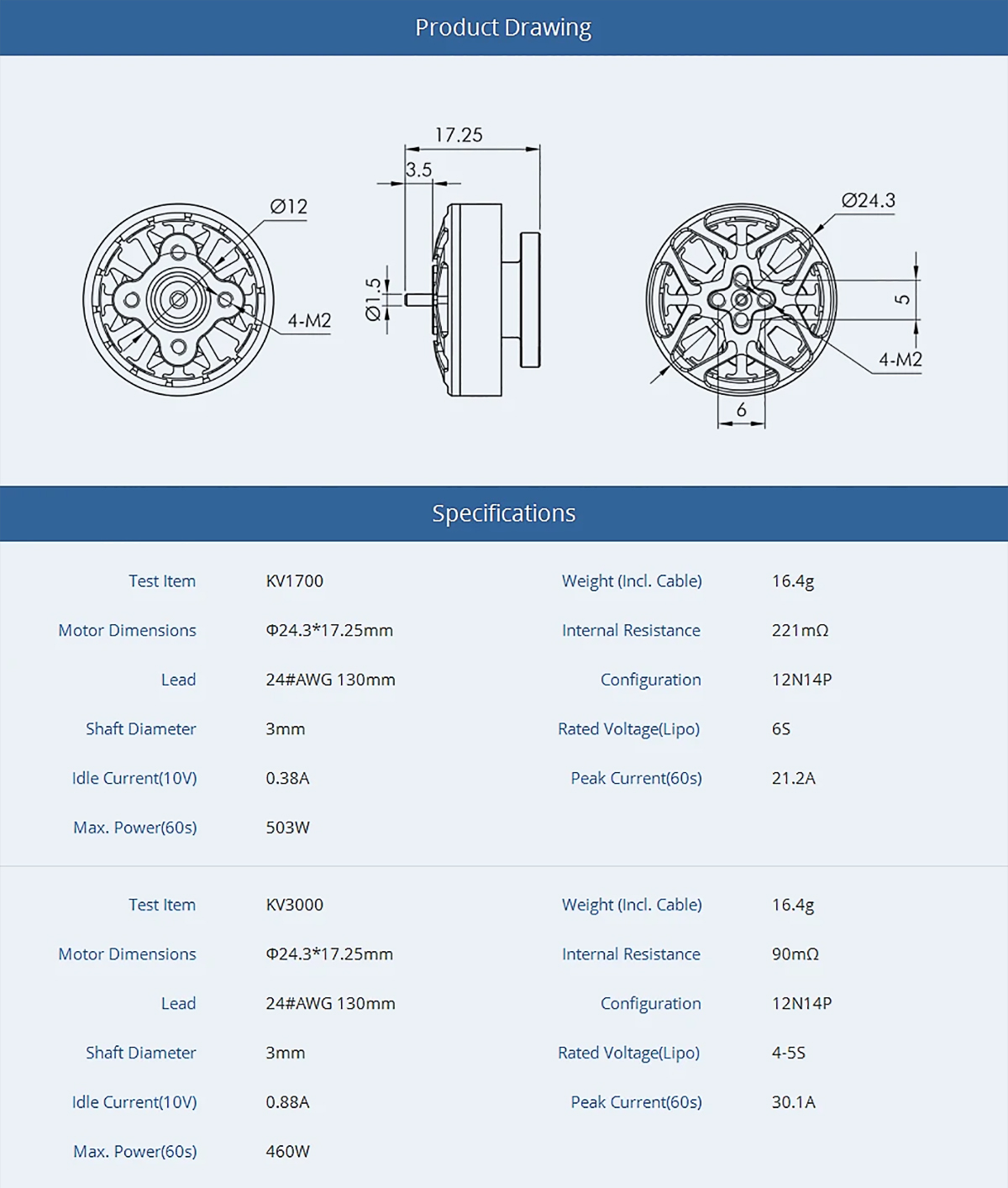 Motor Dimensions: Φ24.3*17.25mm