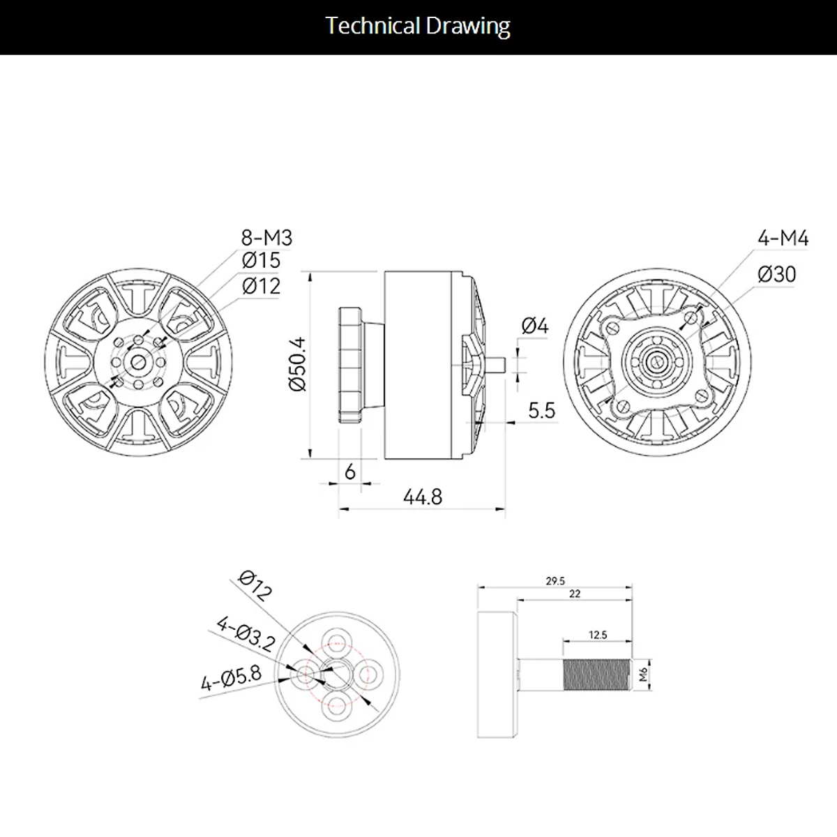 Prop Adapter Shaft Thread: Φ15/Φ12-M3-4/M6 (With Prop Adaptor)