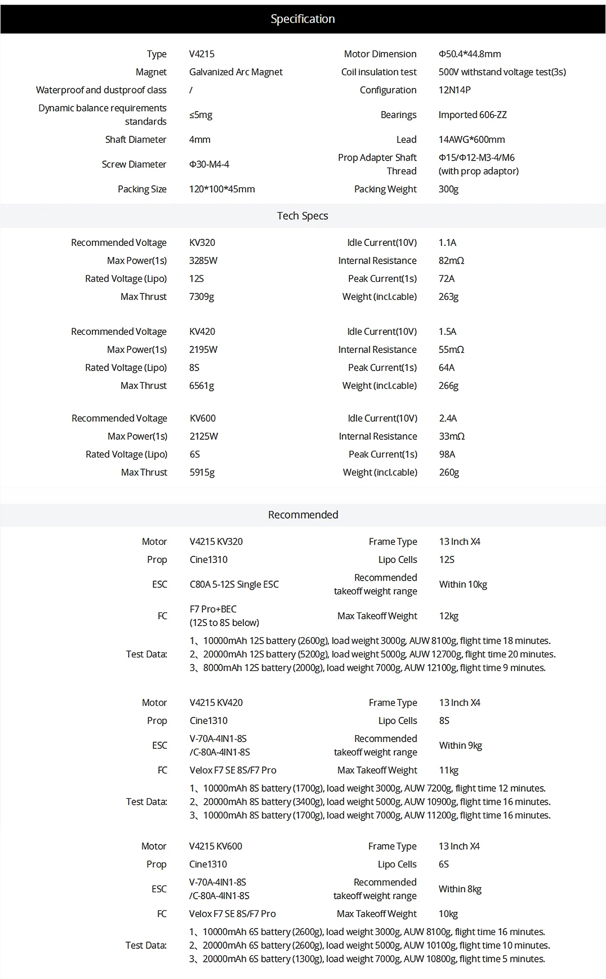 Rated Voltage(Lipo): 12S