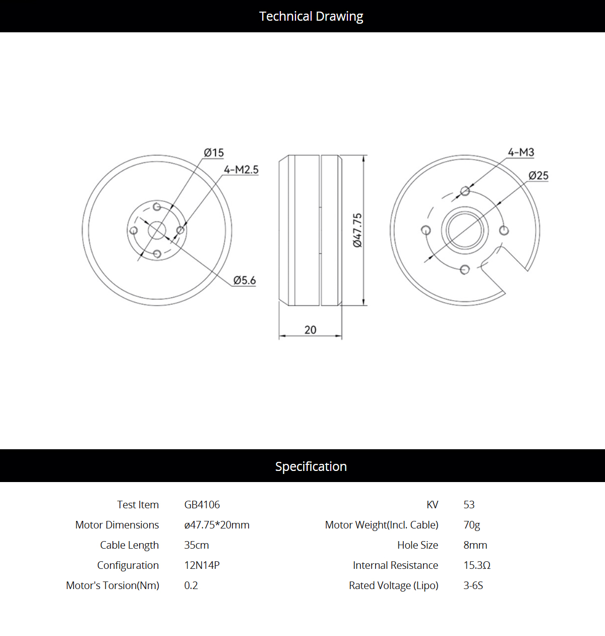 Motor Dimensions: ø47.75*20mm