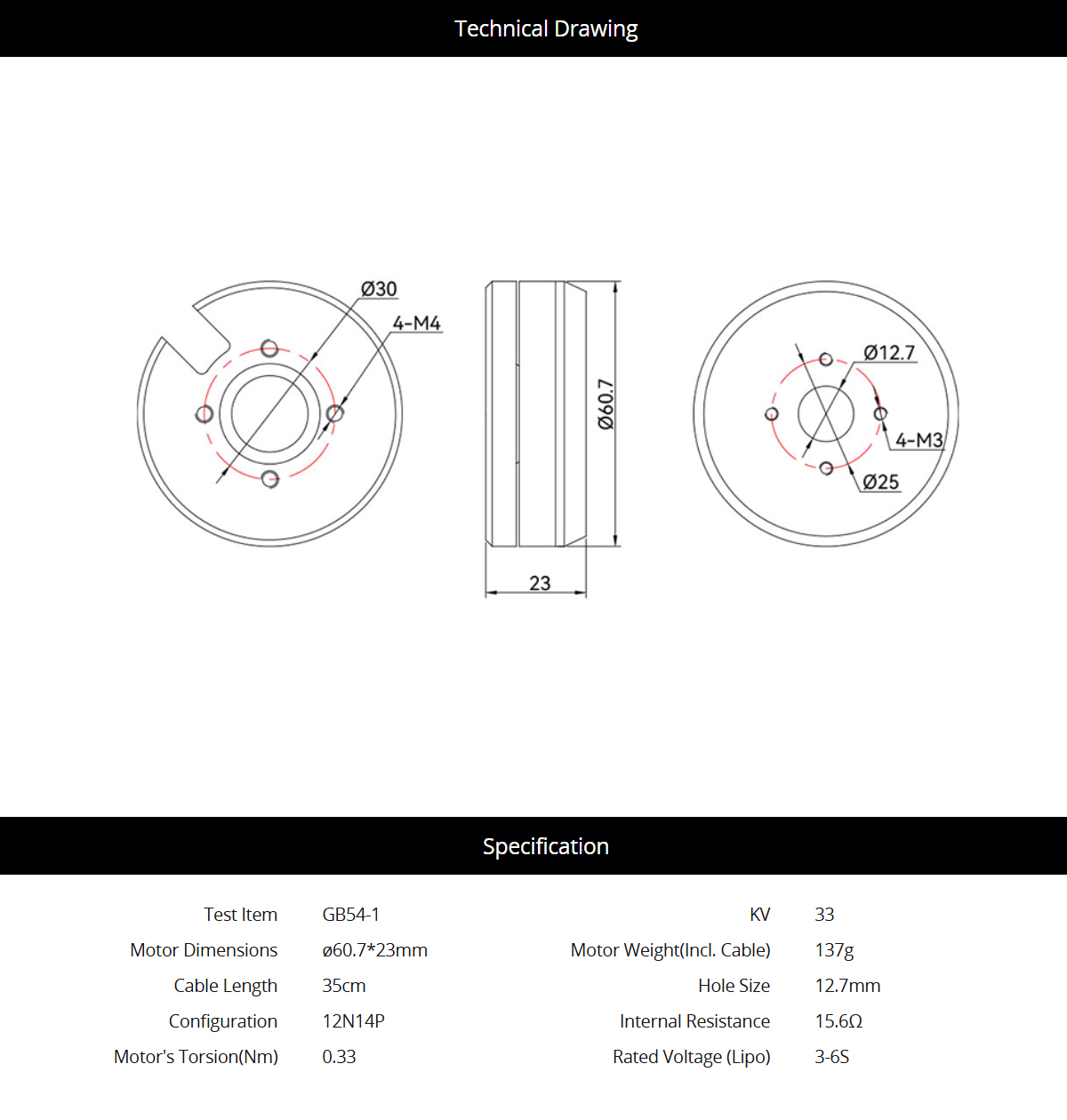 Motor Dimensions: ø60.7*23mm