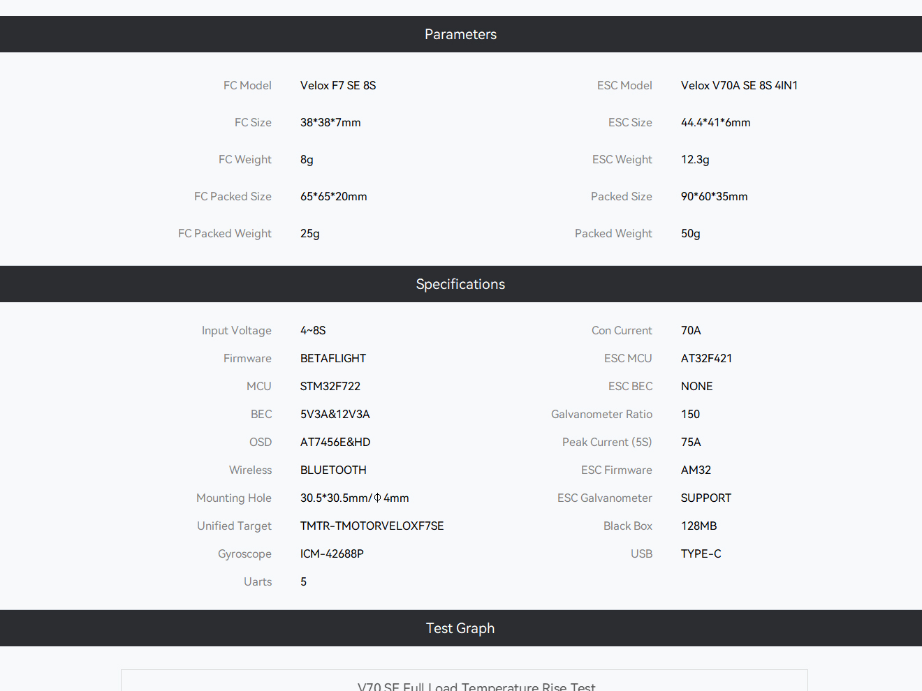 ESC Model: Velox V70A SE 8S 4IN1