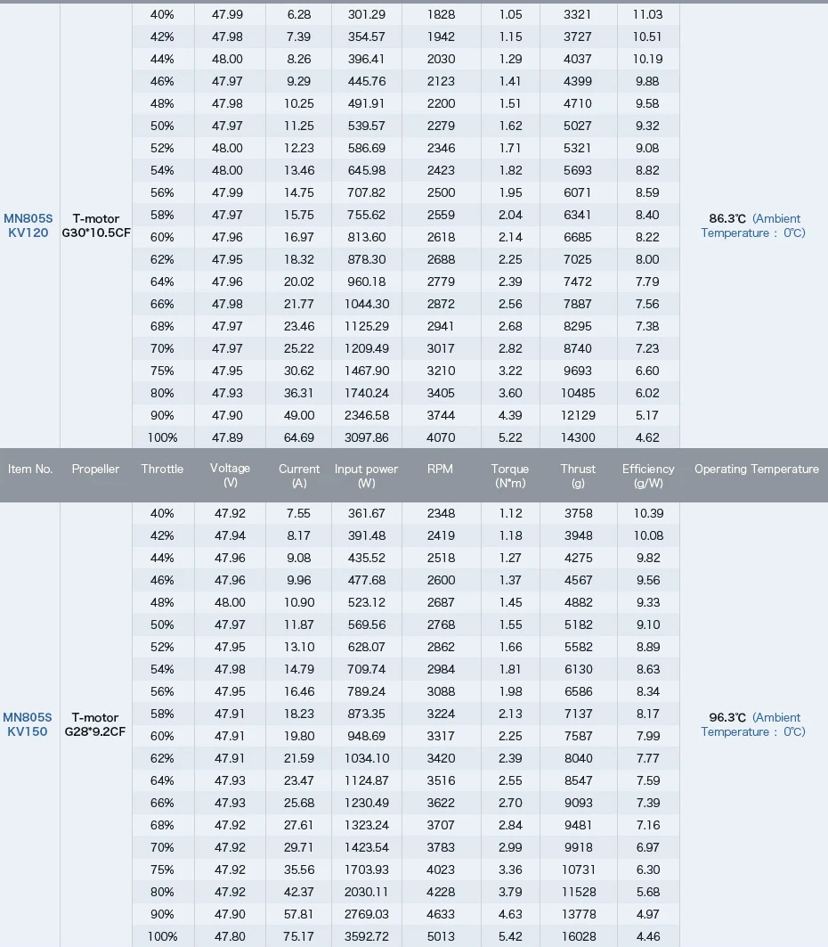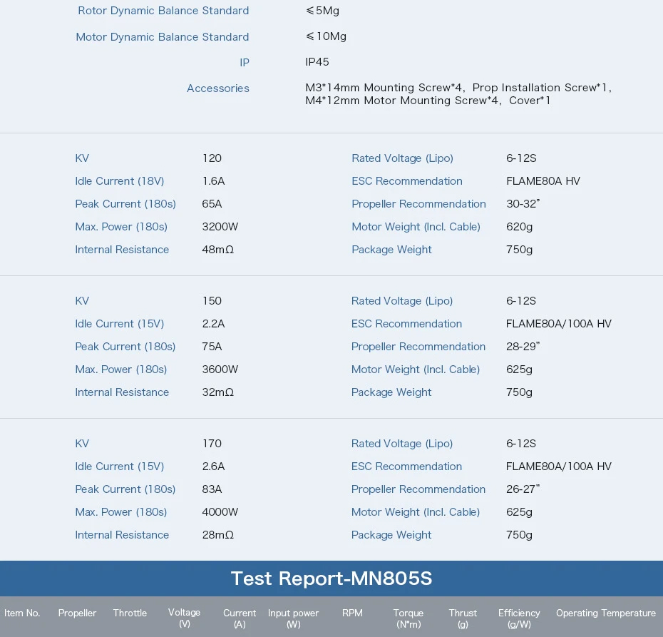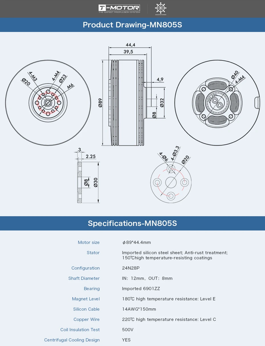 MN705-S T-MOTOR KV125 Brushless motor two piece set working rated voltage12S maximum power2200W