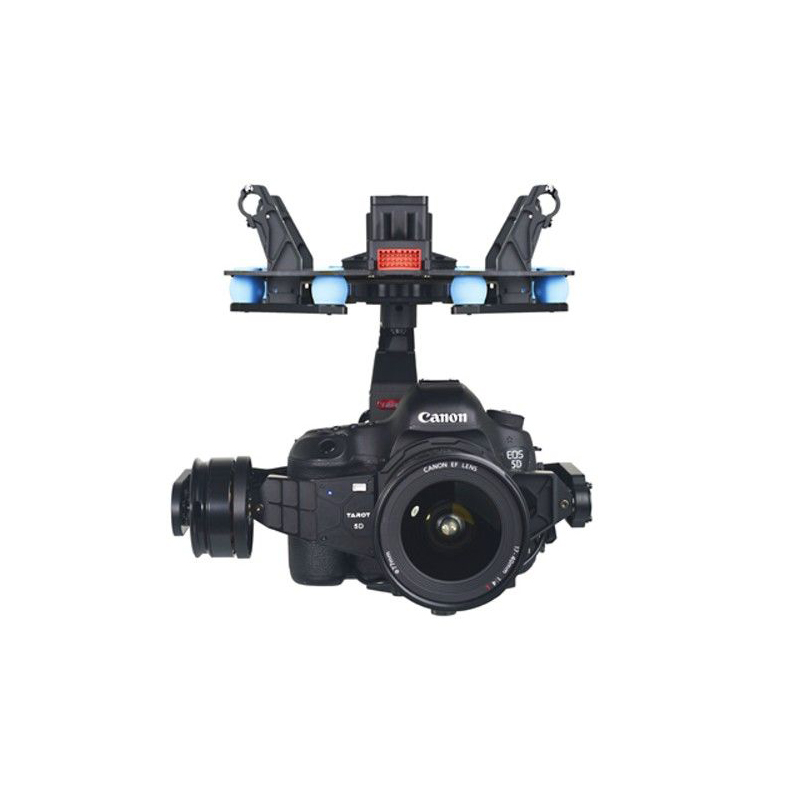 The Tarot 5D3 is based on gimbal system with optimal algorithm. Built-in independent IMU module gives you precise and effortless control. Three working modes are supported, orientation locked, Non orientation locked and FPV. Built-in slip ring simplifies the cabling. The command stick controls gimbal rotation velocity.