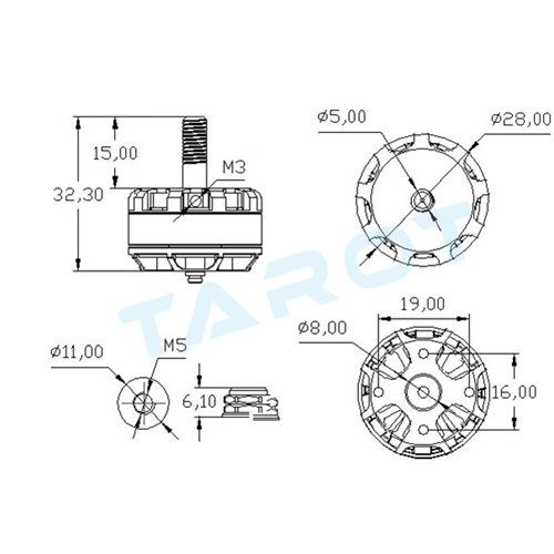 Tarot MT2205Ⅱ-2300KV brushless fan motor suitable for multi-axis cross sections 180/190/200/220 and other machines. MT2205 brushless motor extremely low center of gravity, using 0.20mm ultra-thin high-efficiency silicon steel (primary propeller shaft folder structure) so that it can get the best concentricity guaranteed. Fan motor cover with high efficiency active bulk pad designed to achieve lower operating temperature means higher productivity.