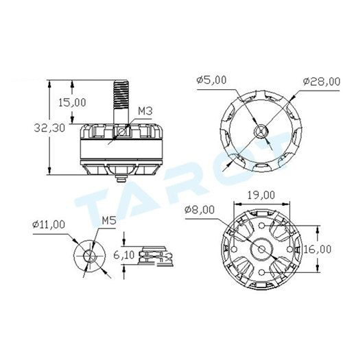 Tarot MT2205Ⅱ-2300KV brushless fan motor suitable for multi-axis cross sections 180/190/200/220 and other machines. MT2205 brushless motor extremely low center of gravity, using 0.20mm ultra-thin high-efficiency silicon steel (primary propeller shaft folder structure) so that it can get the best concentricity guaranteed. Fan motor cover with high efficiency active bulk pad designed to achieve lower operating temperature means higher productivity.