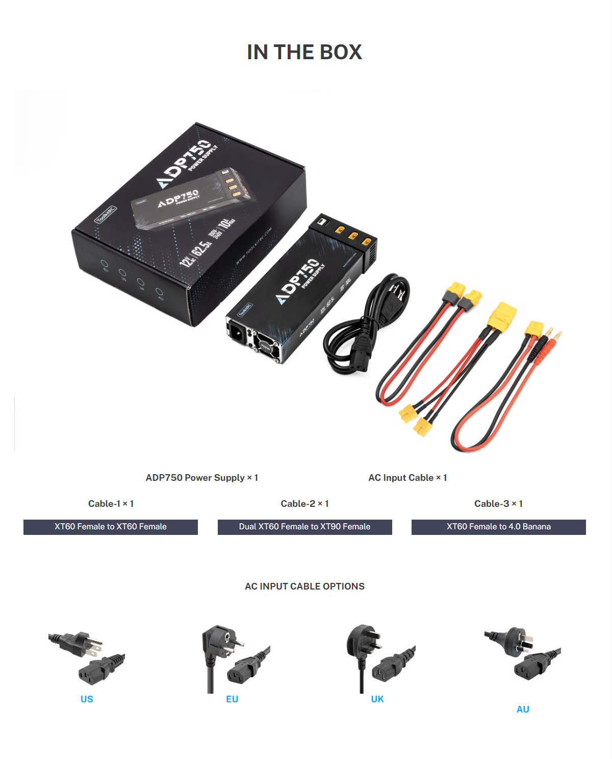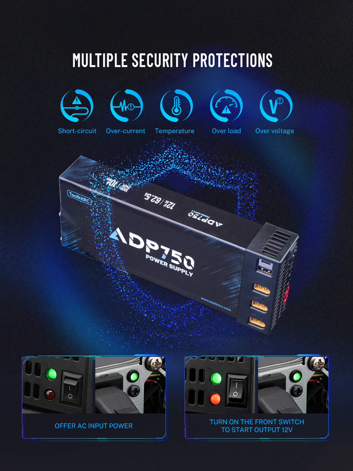 ToolkitRC ADP750 Power Supply Adapter 750W 100-240V AC Input 62.5A Output for ToolkitRC Battery Charger