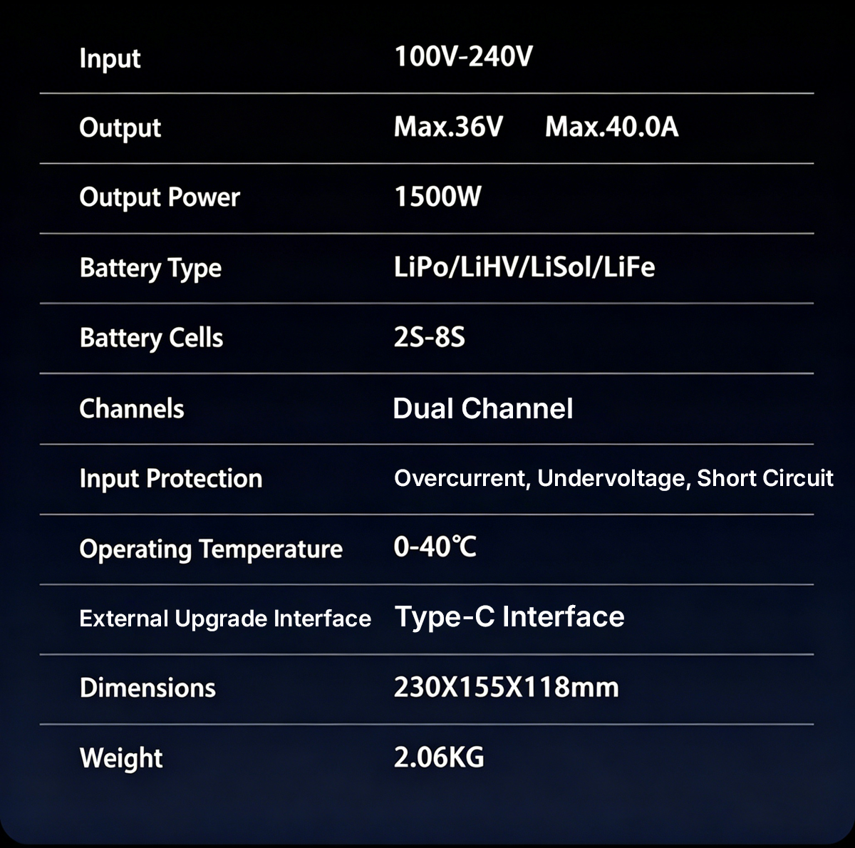 V-PEAK U3-NEO 2S-8S 1500W 40A Smart Balance Fast Charger High Power LiPo LiHV for FPV Racing Drone