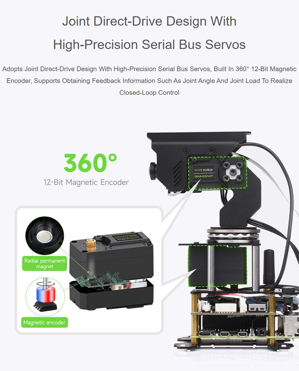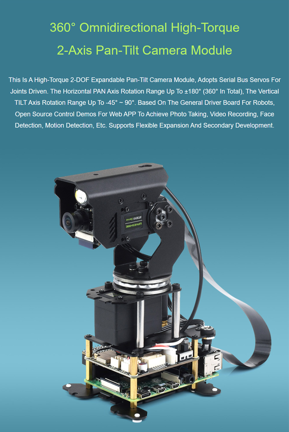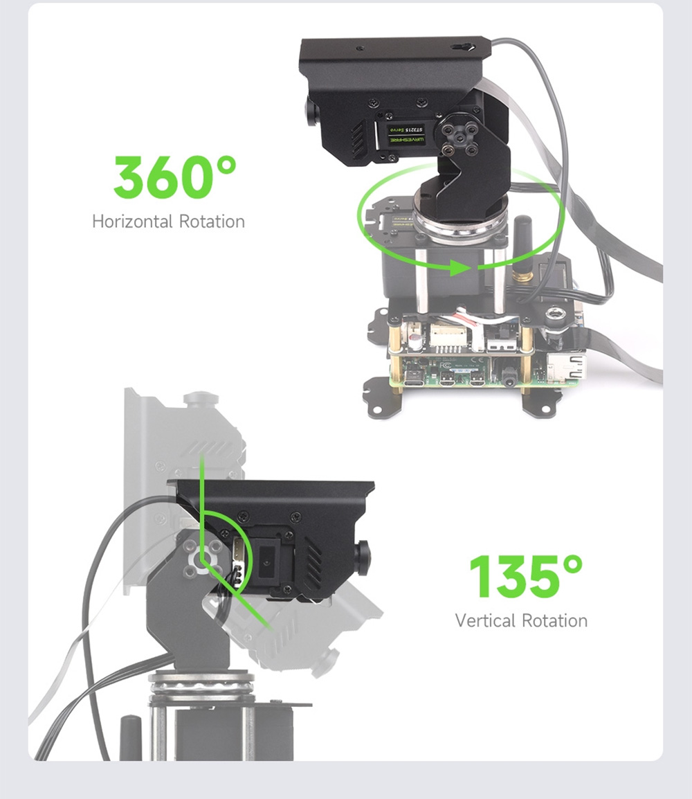 Waveshare 360° Omnidirectional High-Torque 2-Axis Expandable Pan-Tilt Camera Module Serial Bus Servos for Raspberry Pi 4B/5
