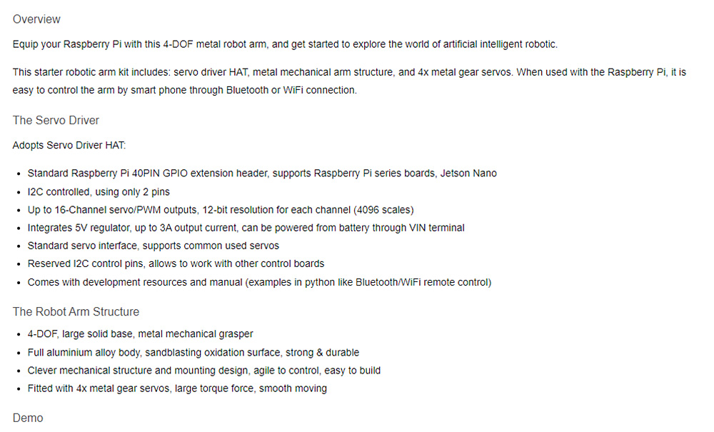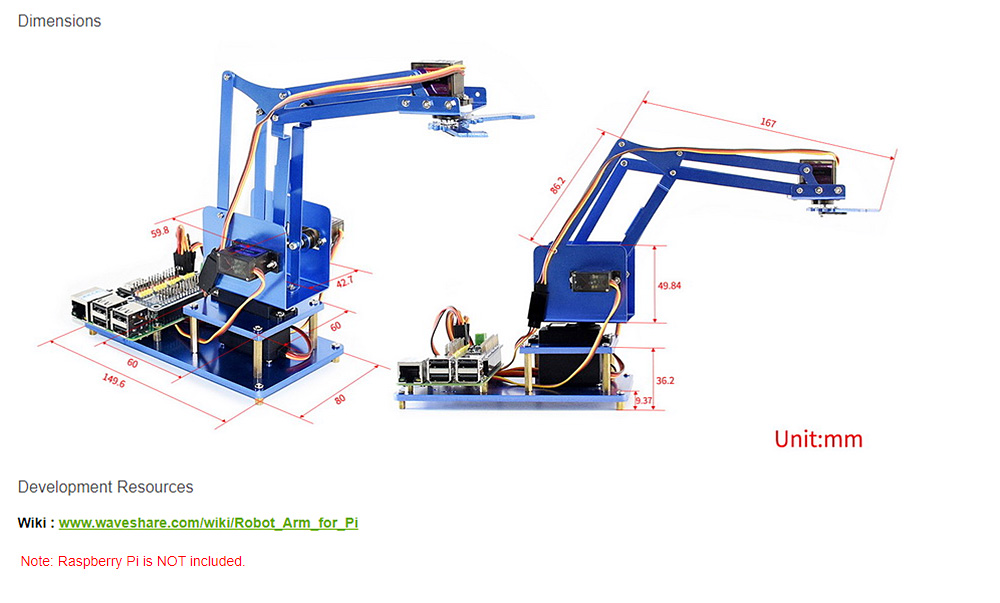 Be the first to review “Waveshare 4-DOF Metal Robot Arm Kit Entry level I2C Controlled for Raspberry Pi” Cancel reply