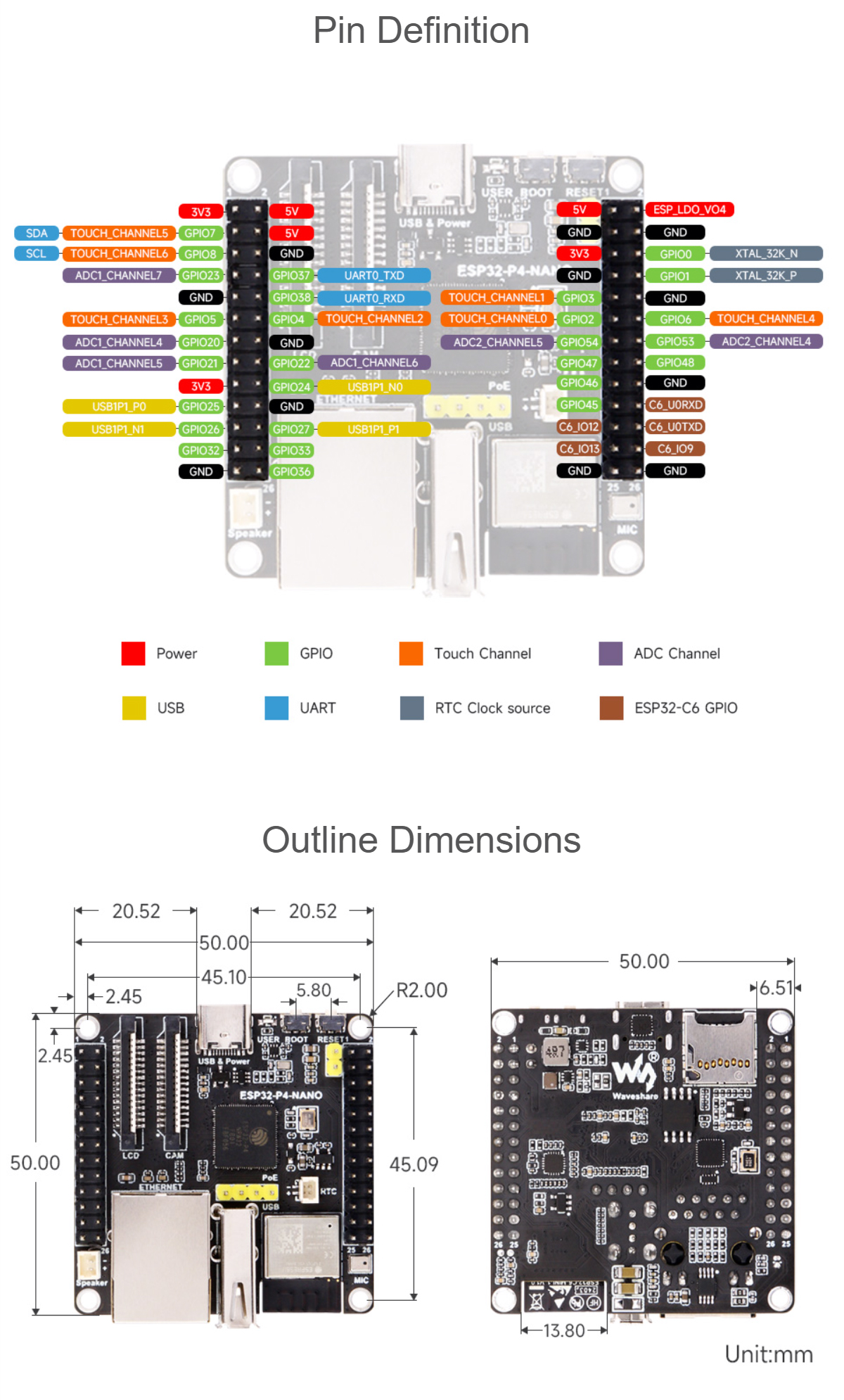 Waveshare ESP32-P4-NANO High Performance Development Board ESP32-P4 Chip Rich 16MB Flash Human Machine Interfaces