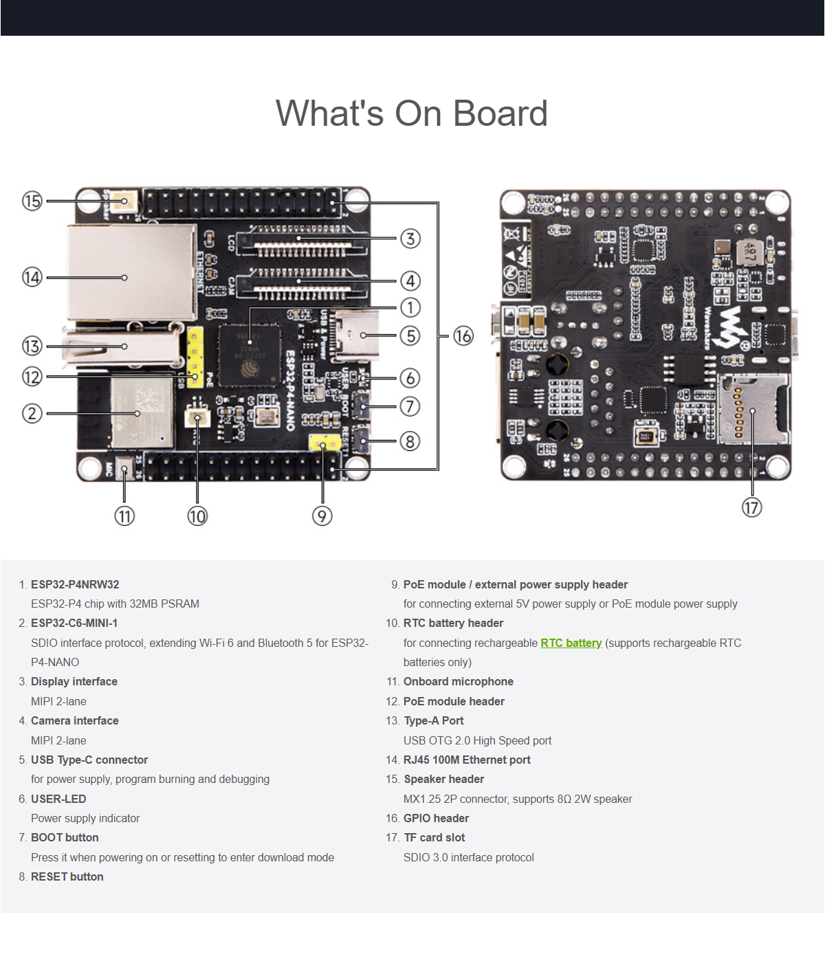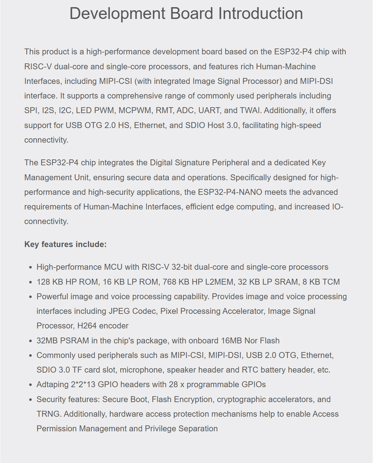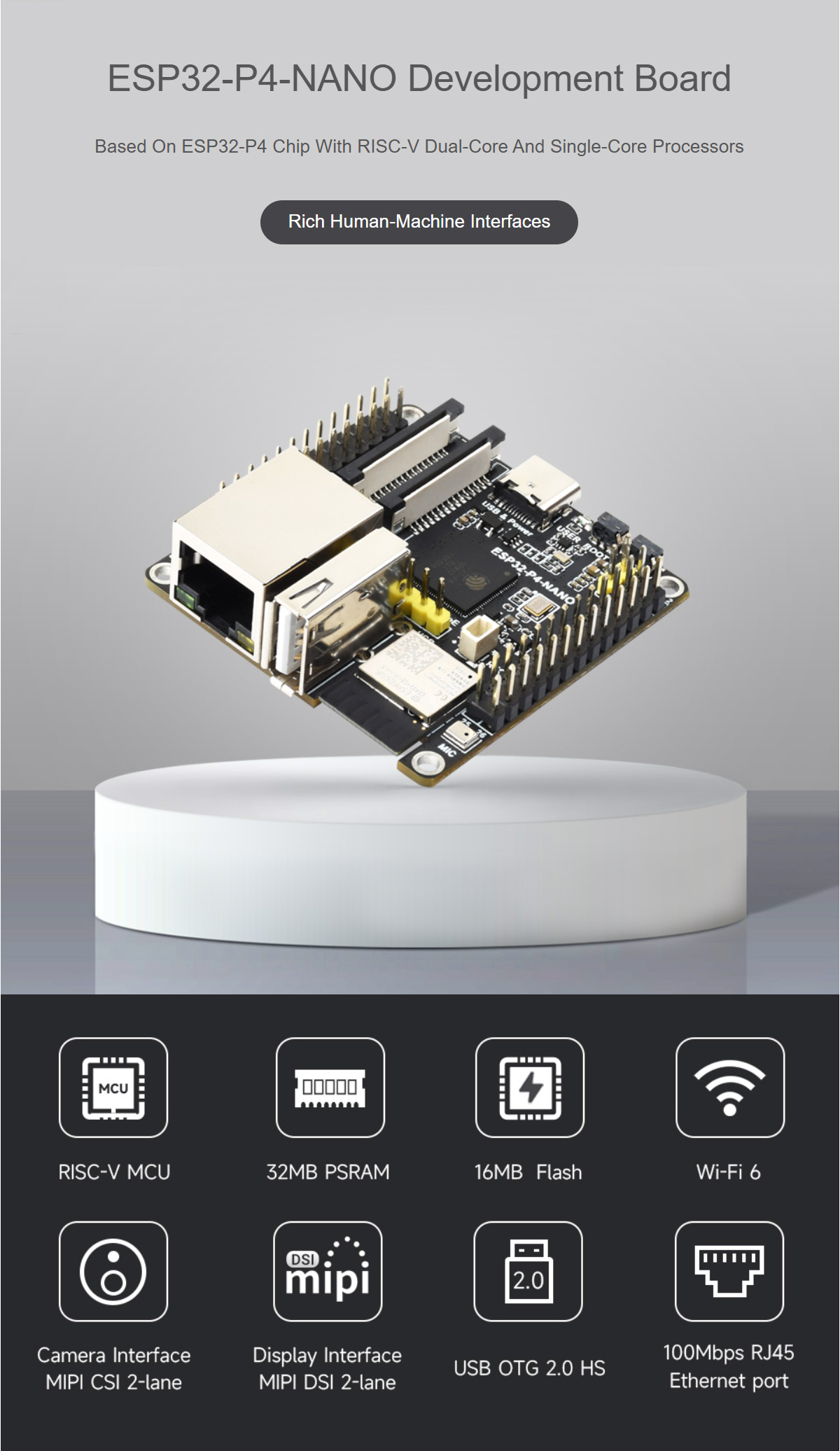 Waveshare ESP32-P4-NANO High Performance Development Board ESP32-P4 Chip Rich 16MB Flash Human Machine Interfaces