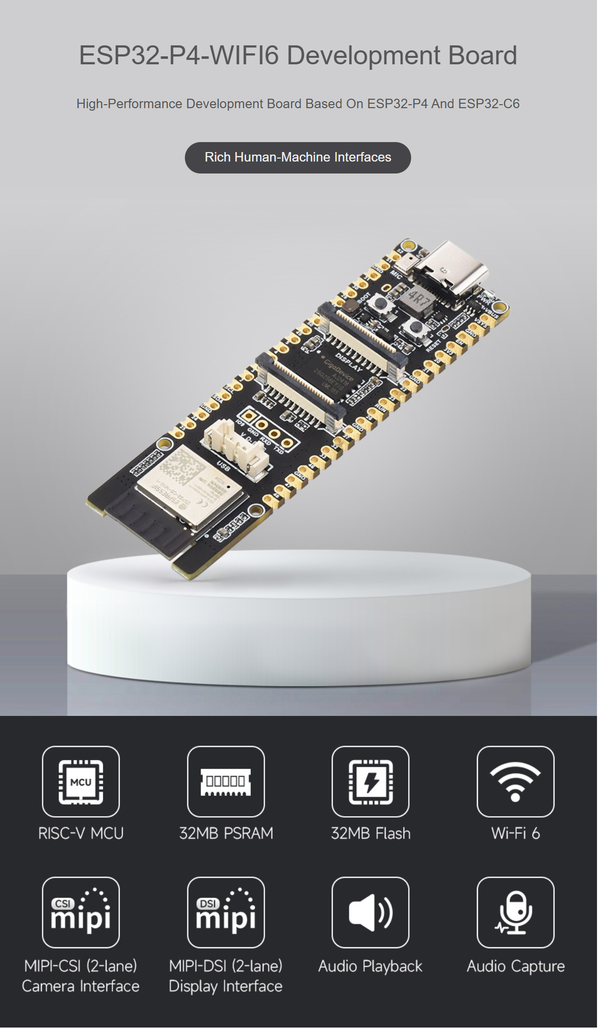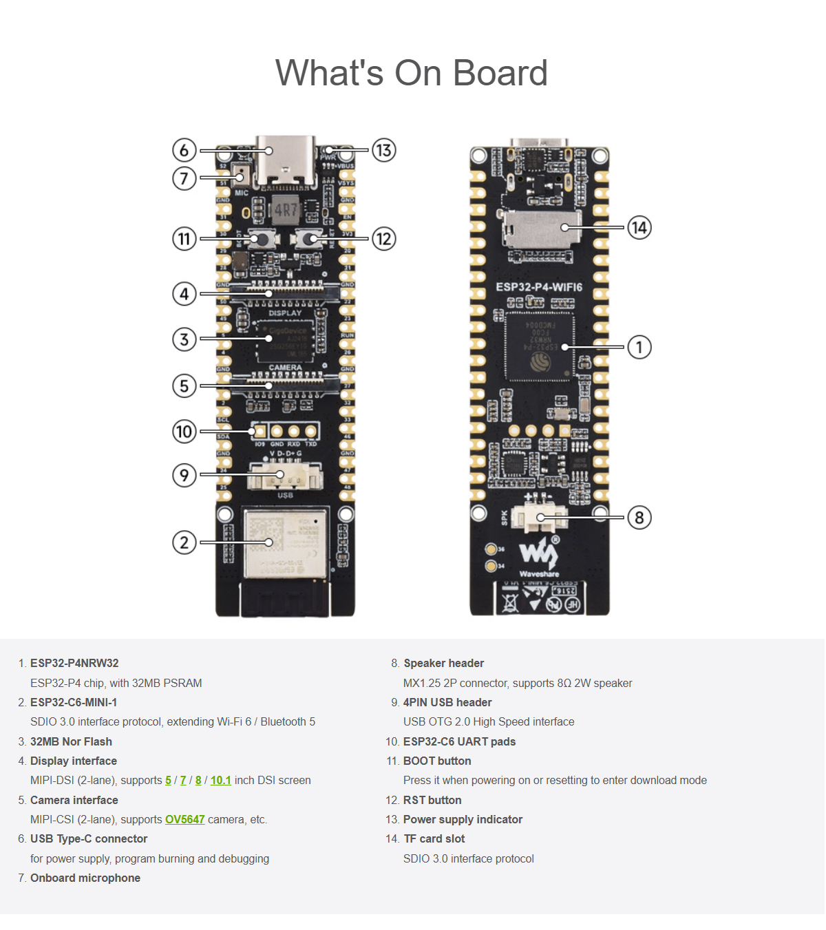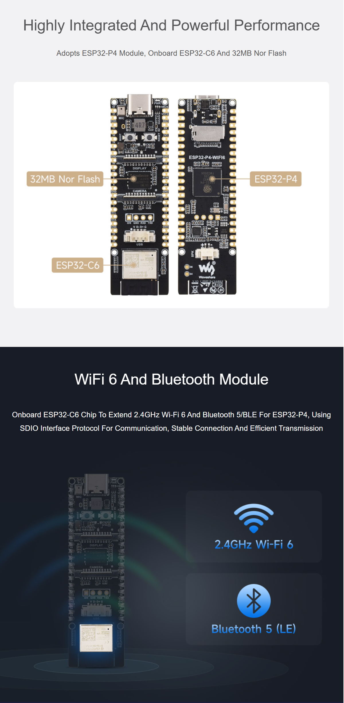 Waveshare ESP32-P4-WIFI6 High Performance Development Board Based On ESP32-P4 ESP32-C6 Rich Human Machine Interfaces