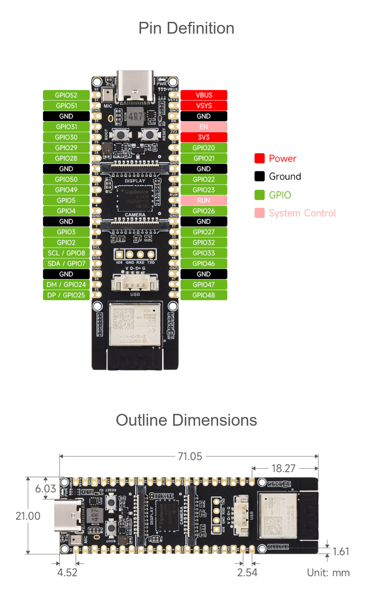 32MB PSRAM in the chip’s package, with onboard 32MB Nor Flash
