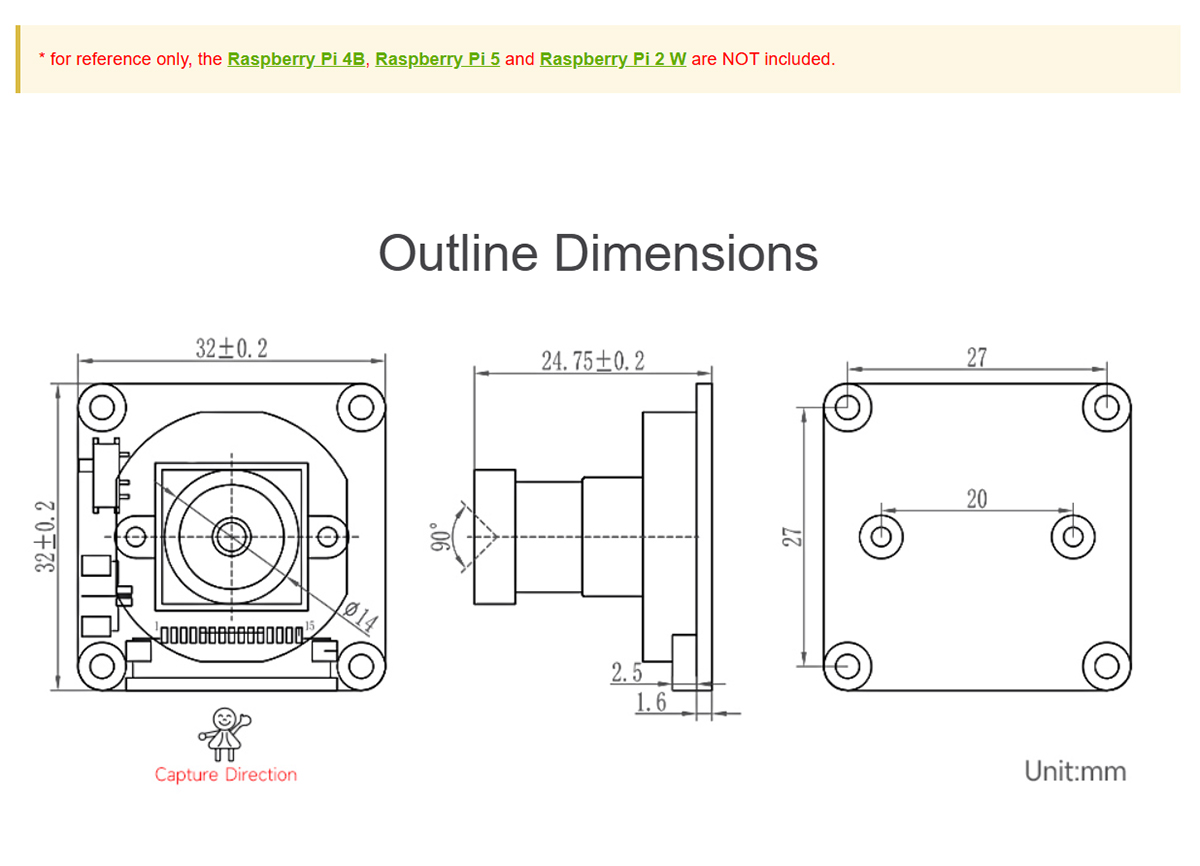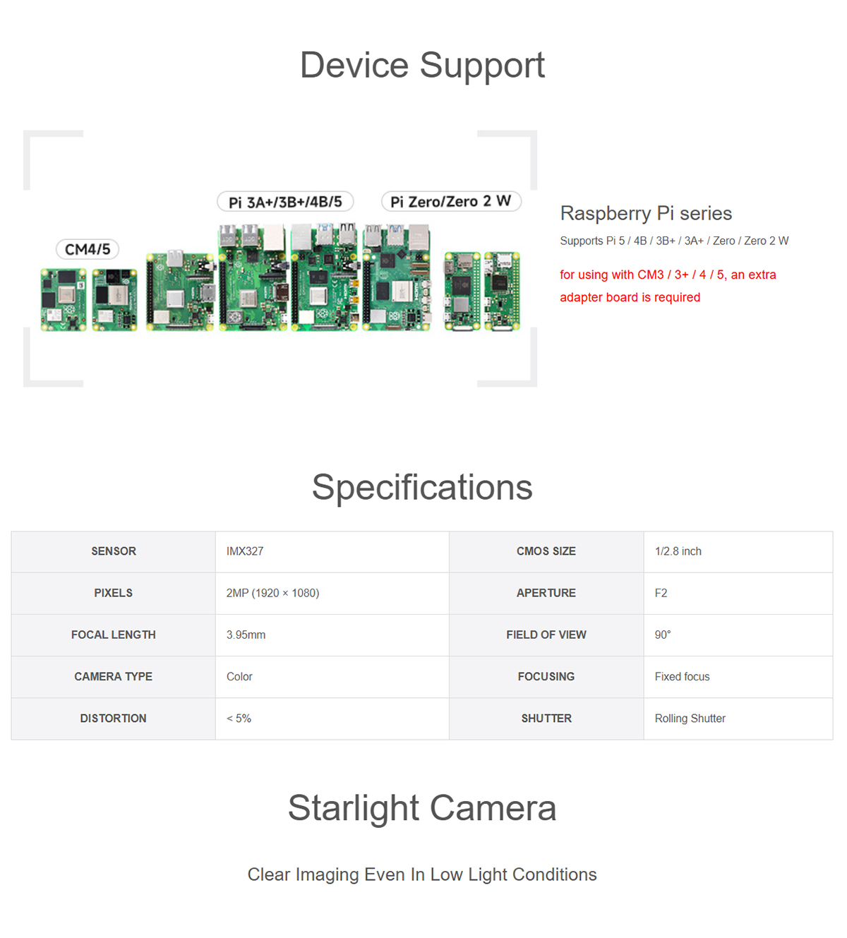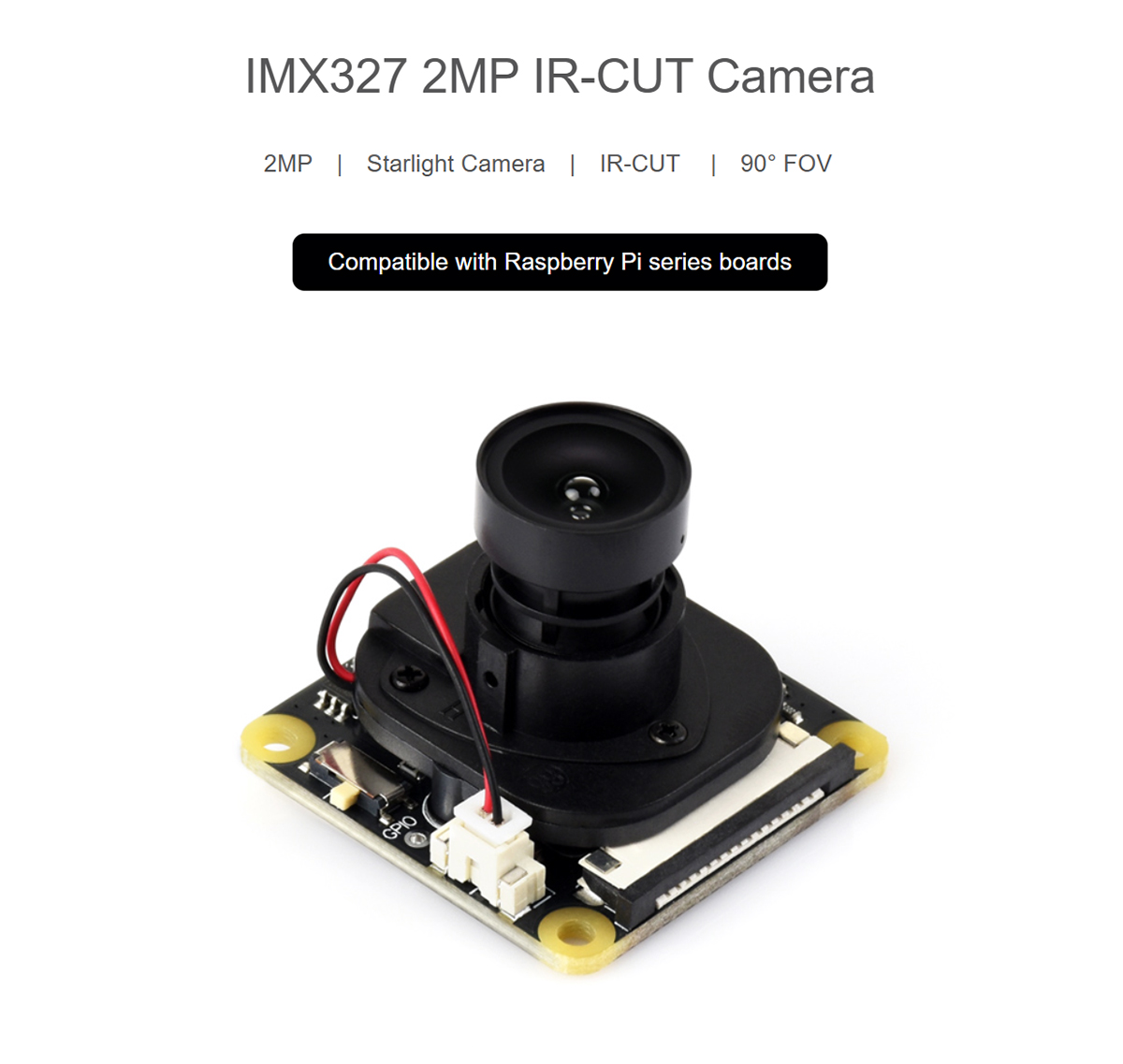 IMX327 2MP IR-CUT Camera, Starlight Camera Sensor, Fixed-Focus, 90° Diagonal FOV, Compatible With Raspberry Pi Series Boards