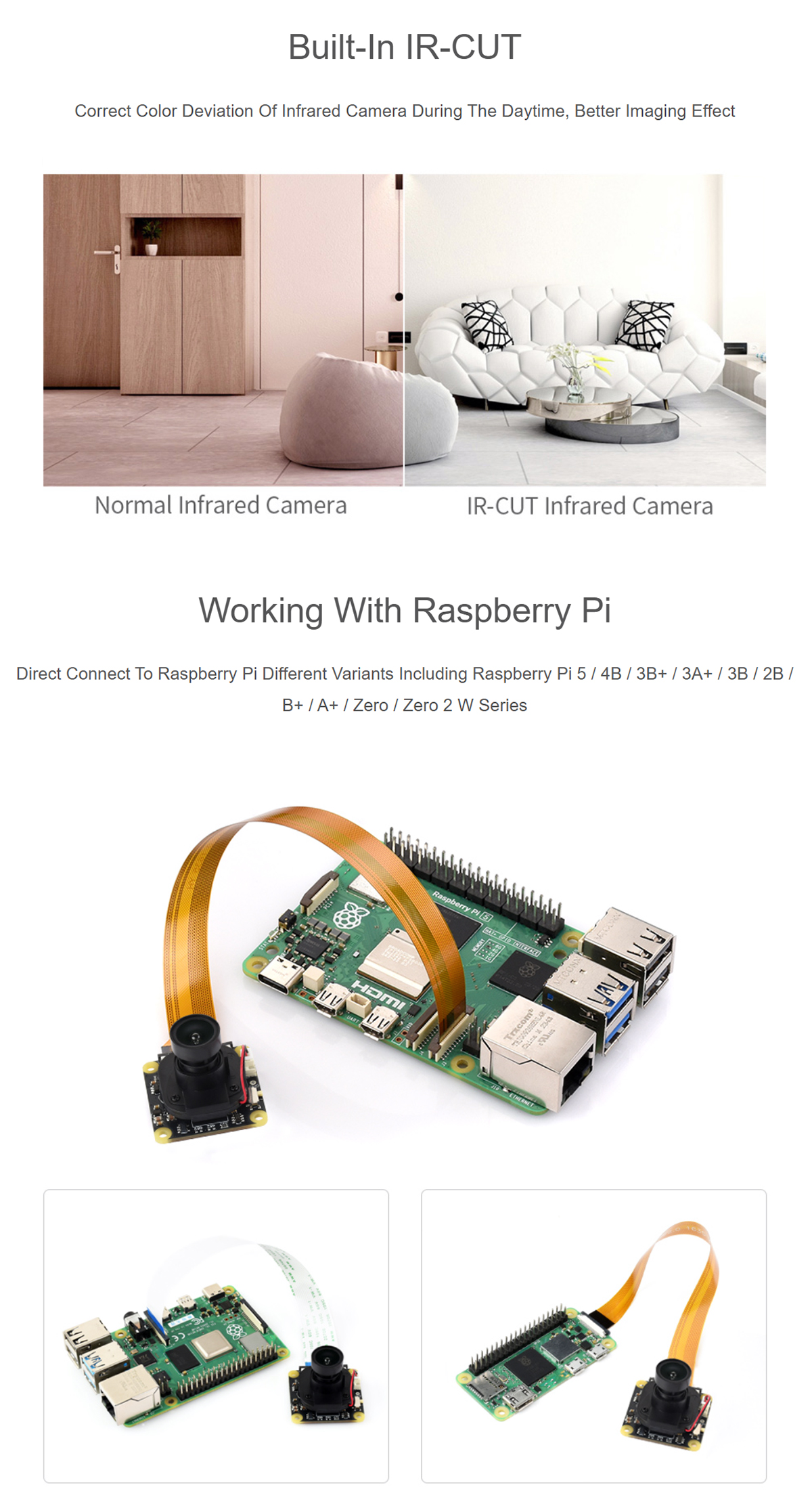 Waveshare IMX327 2MP IR-CUT Camera Fixed-Focus 90° Diagonal FOV Starlight Camera Sensor for Raspberry Pi