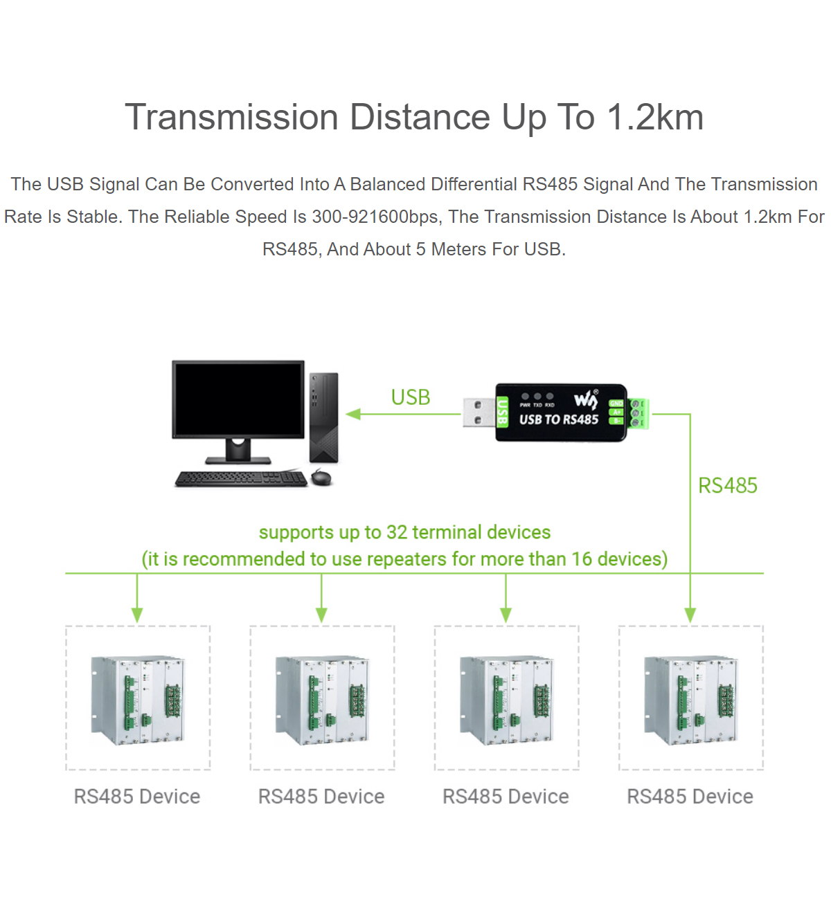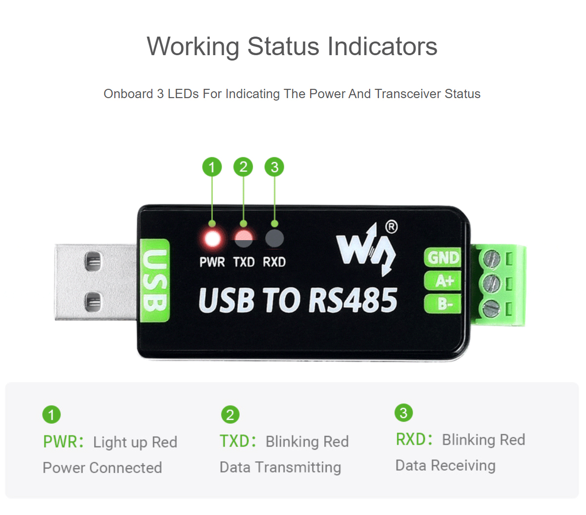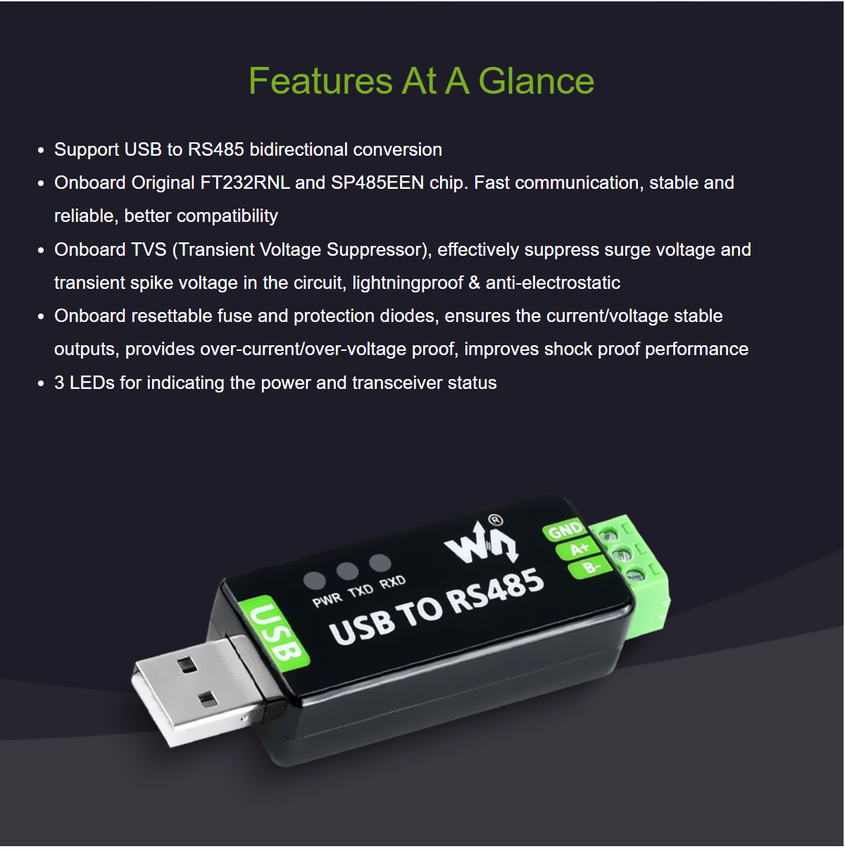 Waveshare Industrial USB to RS485 Bidirectional Converter Original FT232RNL and SP485EEN Chips Multi System Support