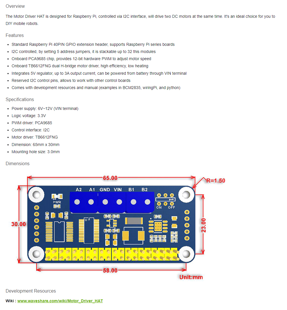 Motor Driver HAT For Raspberry Pi, I2C Interface