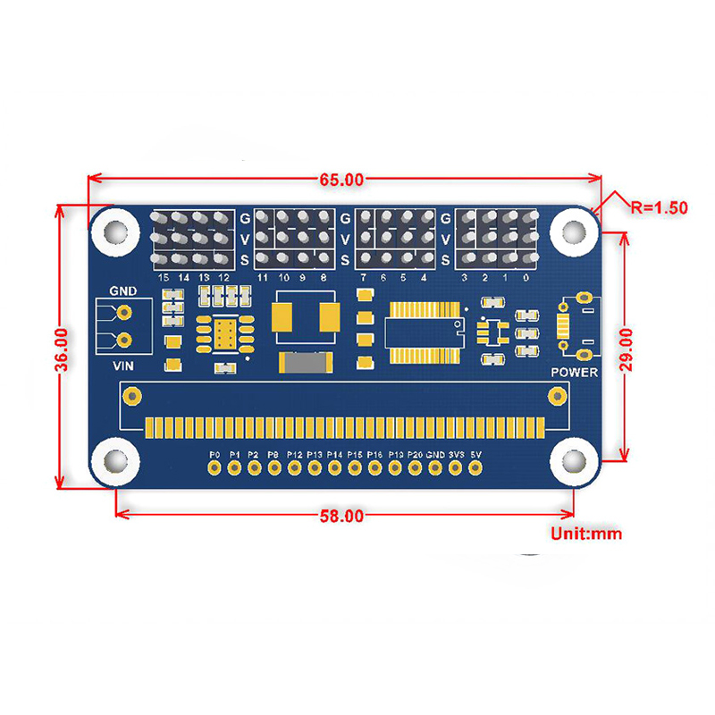 Waveshare Servo Driver HAT Straight Pinheader 16-Channel 12-bit Resolution I2C-Controlled for Raspberry Pi
