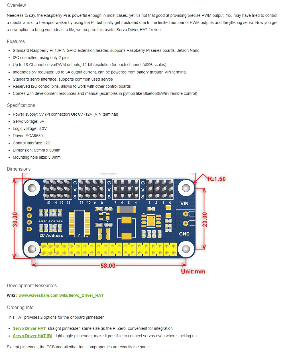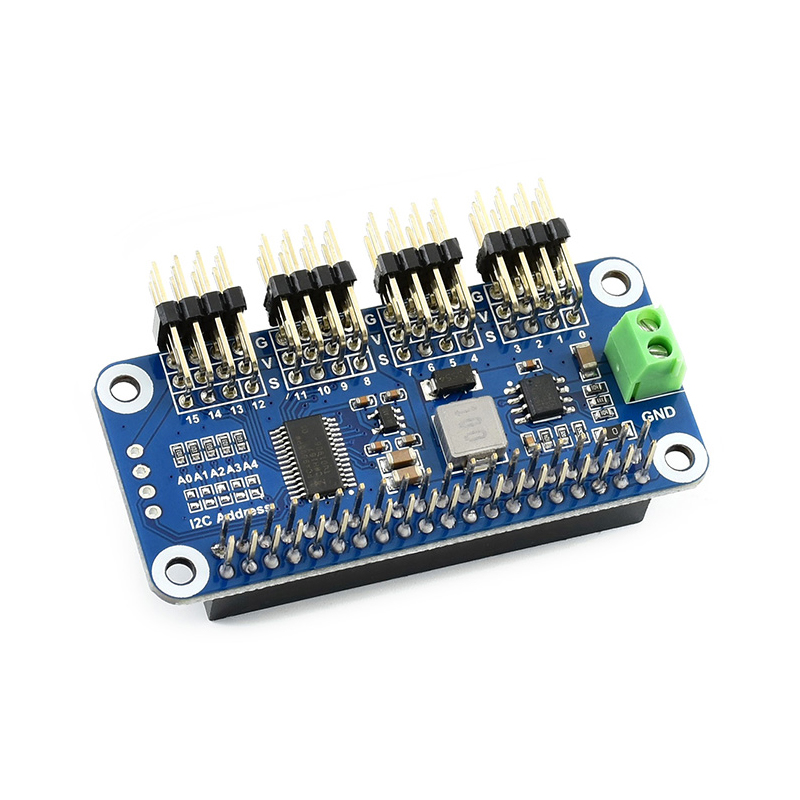 Servo Driver HAT (B) For Raspberry Pi, 16-Channel, 12-Bit, I2C Interface, Right Angle Pinheader