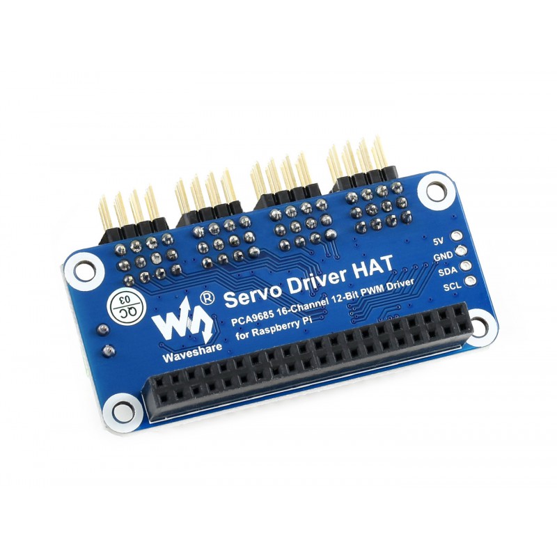 Waveshare Servo Driver HAT Straight Pinheader 16-Channel 12-bit Resolution I2C-Controlled for Raspberry Pi