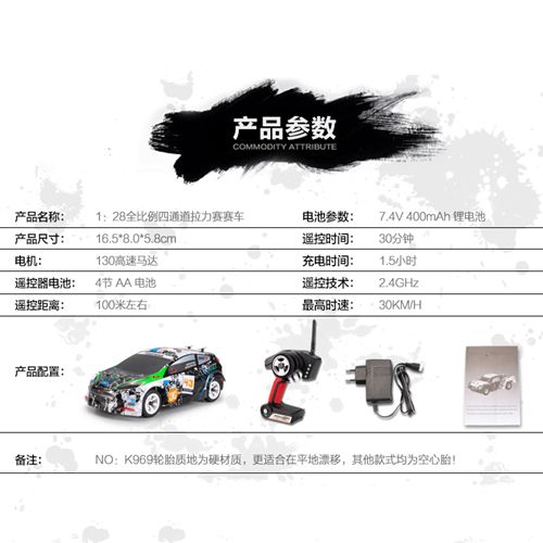 1:28 Scale RTR Version,4 Wheels Drive, 2.4G Radio Control, Able to support multiples cars racing at the same time, easy to control.