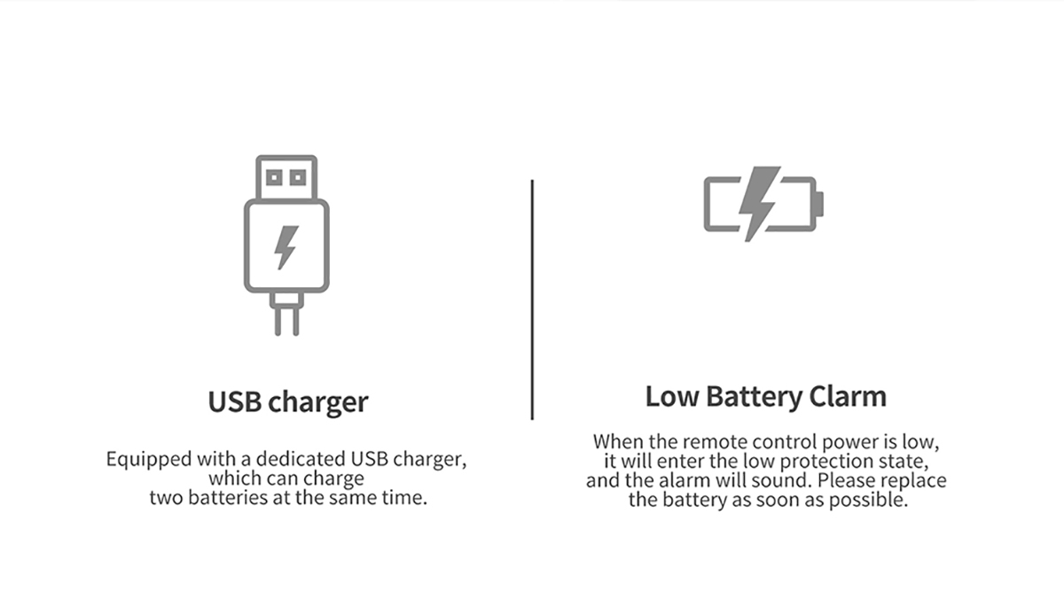 Comes with a dedicated USB charger that can charge 2 batteries simultaneously.