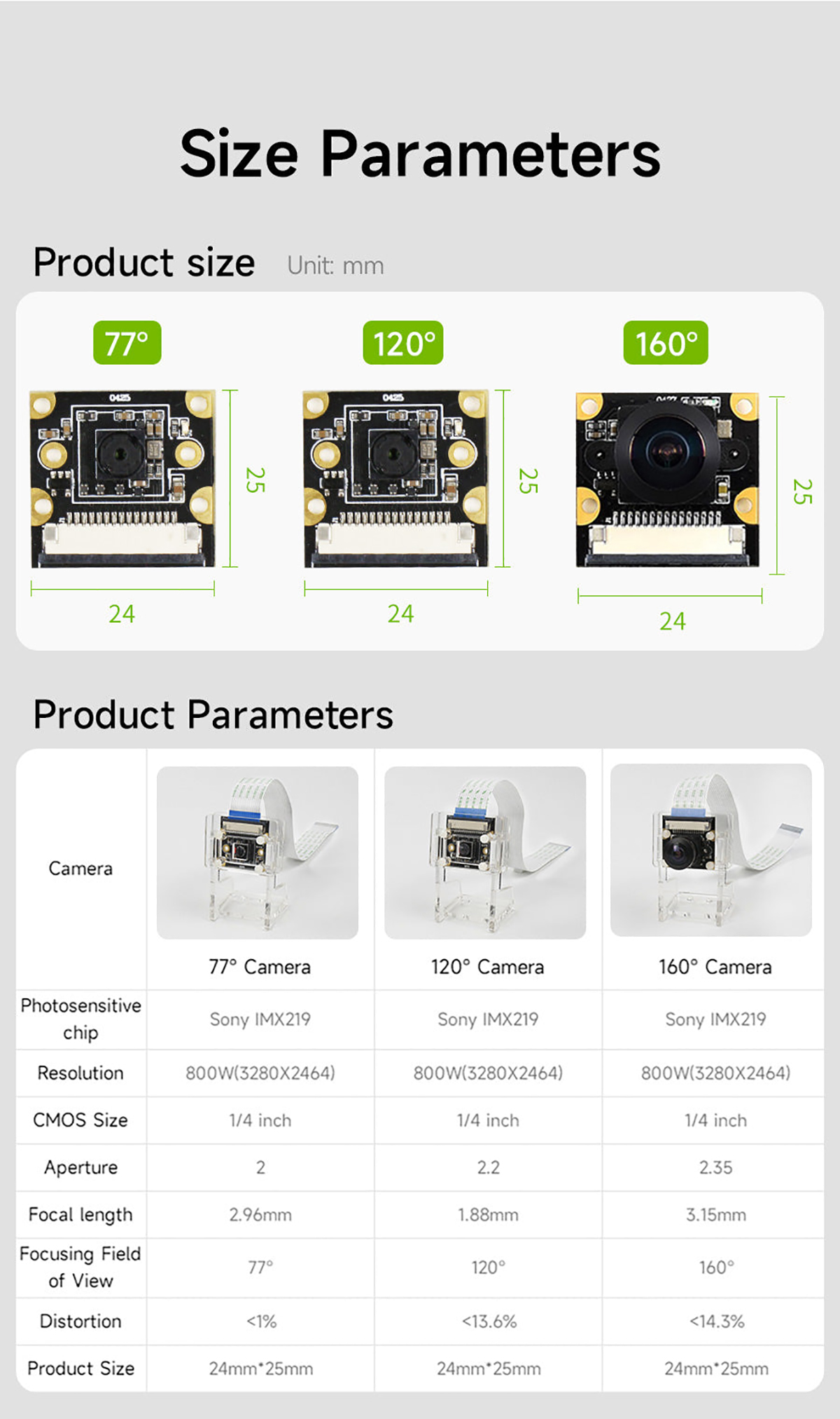 Resolution: 800W(3280×2464)