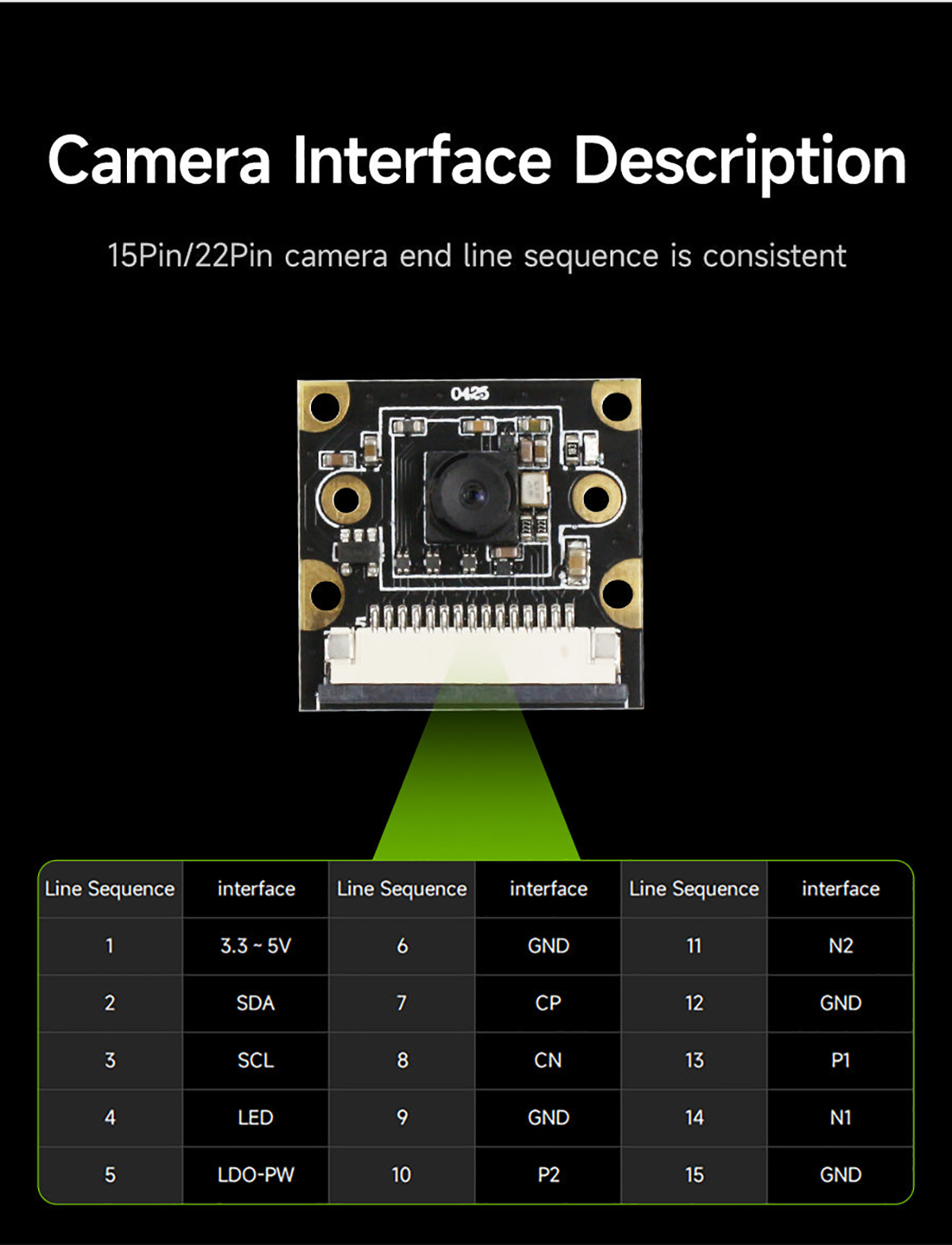 FFC camera cable (15pin or 22pin optional) x1
